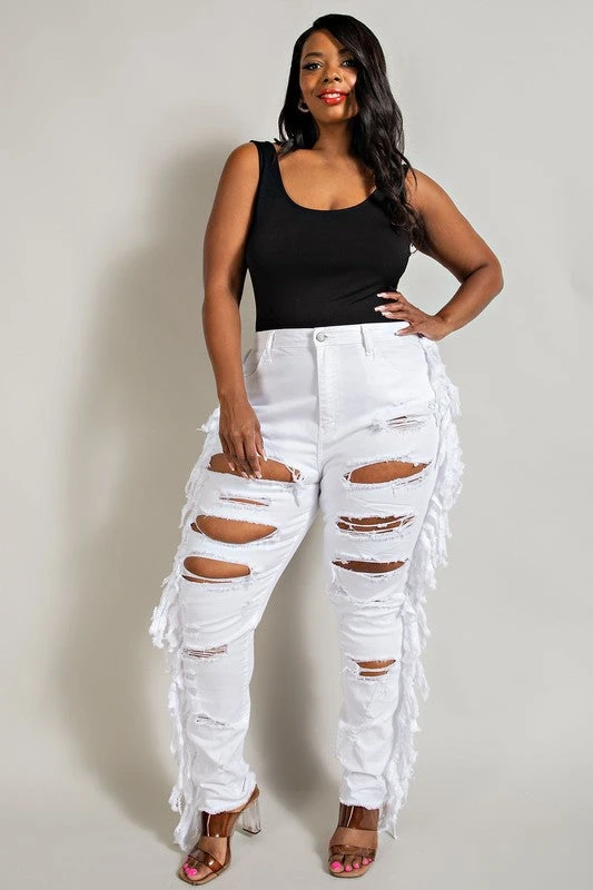 BT-B {The Map} White SALE! Destroy Side Fringe Jeans PLUS SIZE 1X 2X 3X