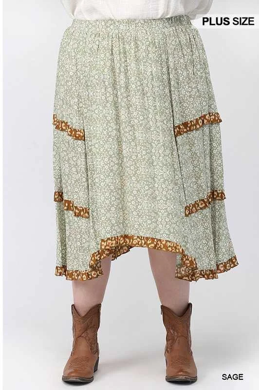 BT-F {Tied Up In Flowers} Sage Floral Skirt SALE!! PLUS SIZE XL 1X 2X
