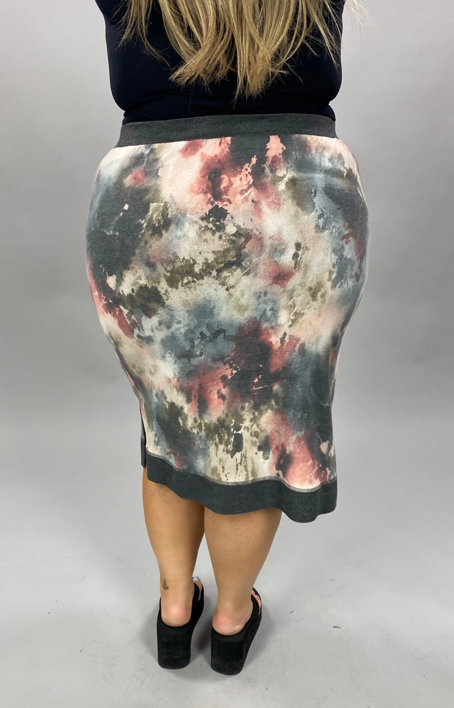 BT-I {That’s Life} Charcoal Mauve Tie Dye Skirt SALE!!! PLUS SIZE XL 2X 3X
