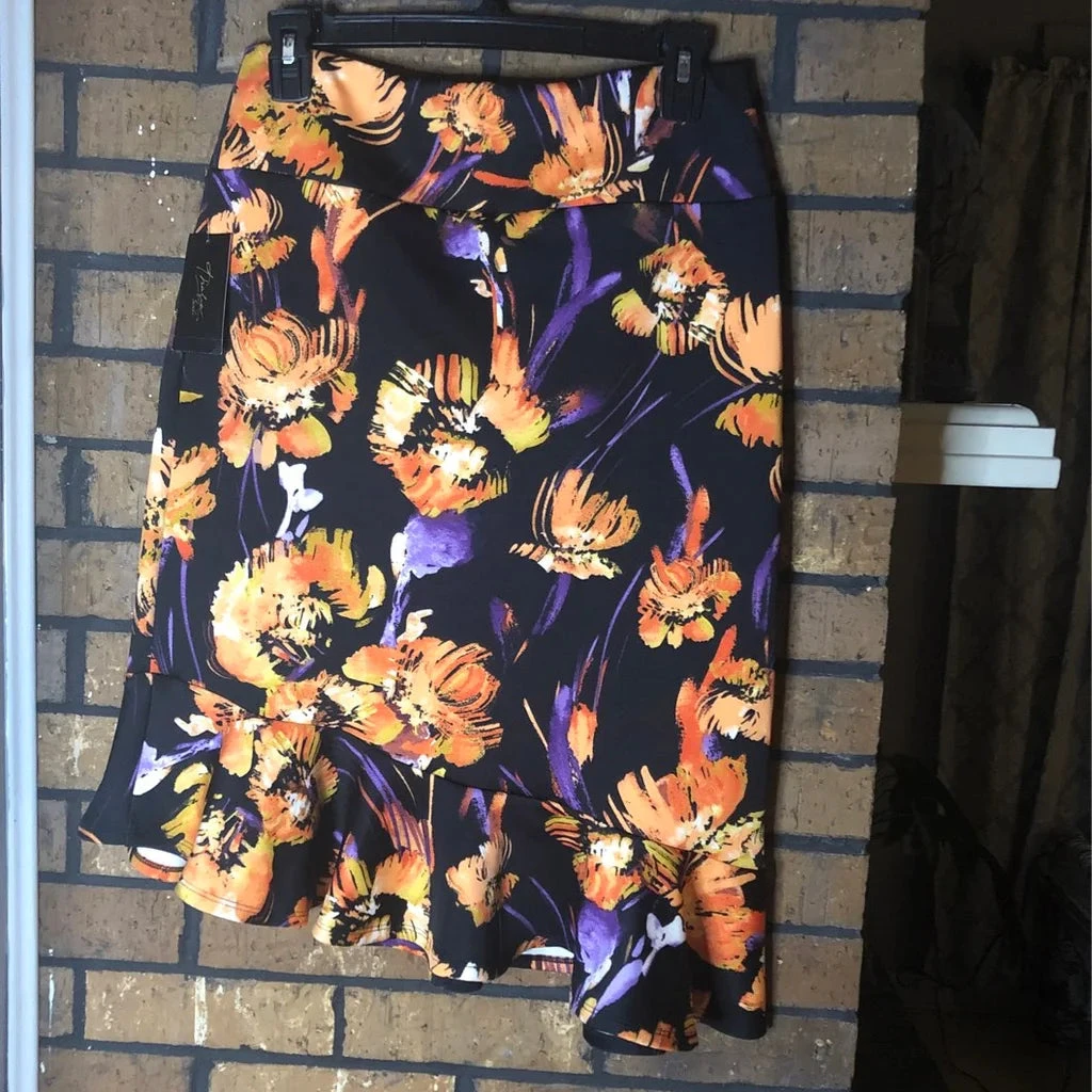 BT-M M-109 {Thalia Sodi} Black Floral Ruffle Skirt Retail $59.50 PLUS SIZE XL SALE!!