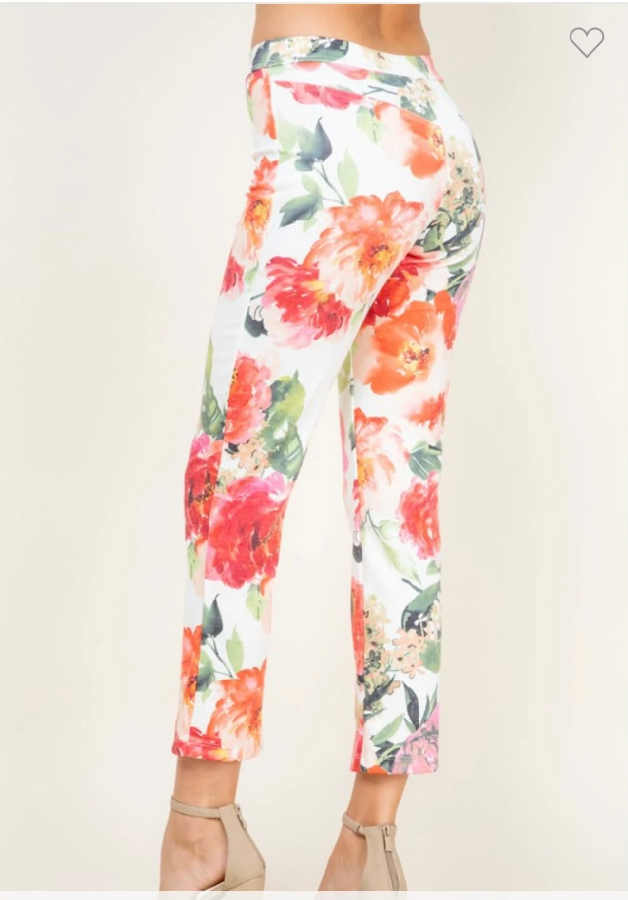 BT-Z {Made For Admiration} Ivory Floral Capri Pants PLUS SIZE XL 2X 3X