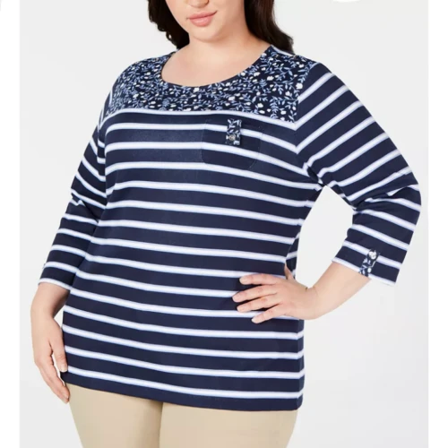CP-A M-109 {Karen Scott} Navy Striped Printed Top Retail $36.50 ***FLASH SALE***
