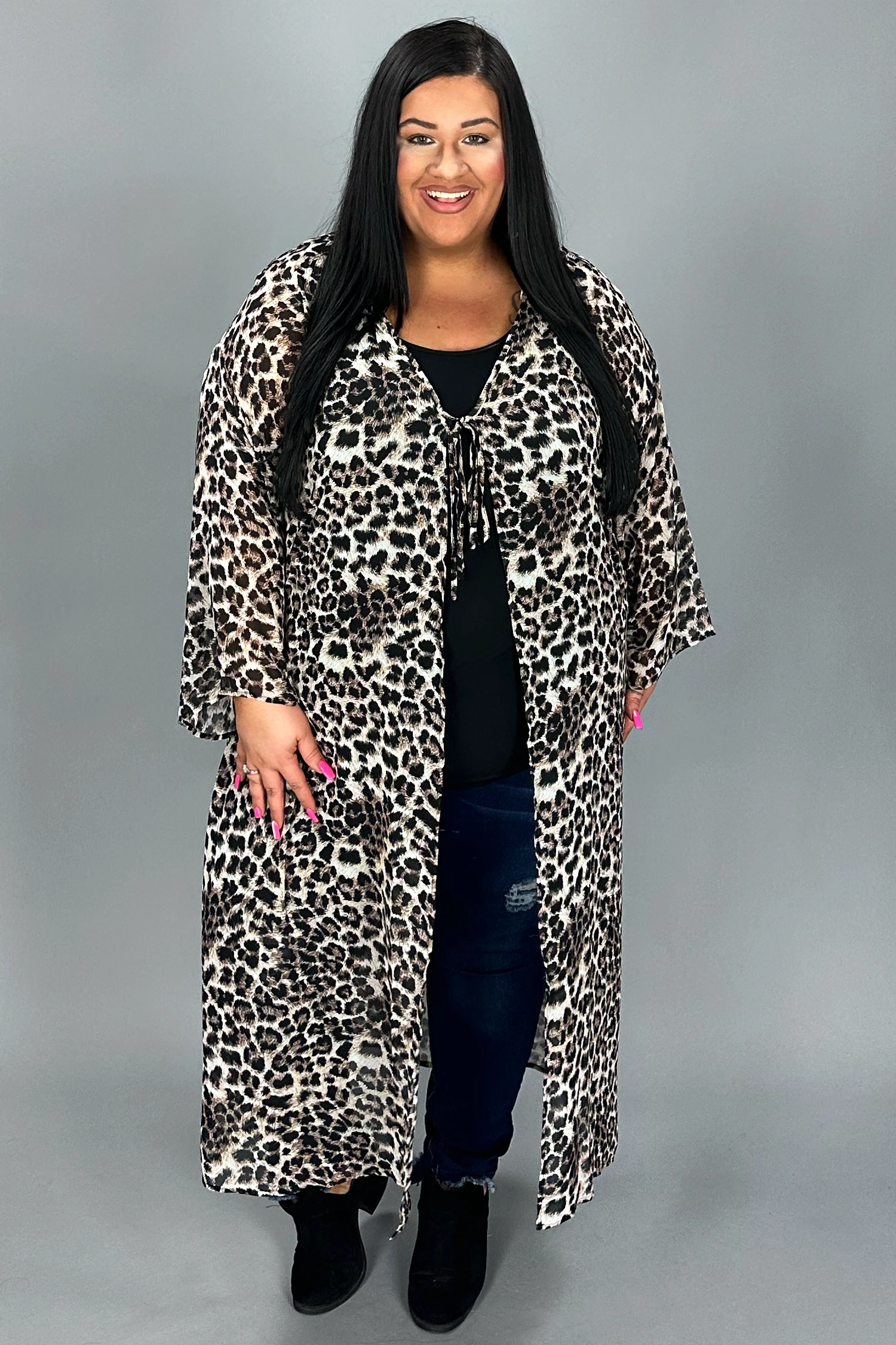 LD-C {Chic Edge} Leopard Print Long Kimono PLUS SIZE XL 2X 3X