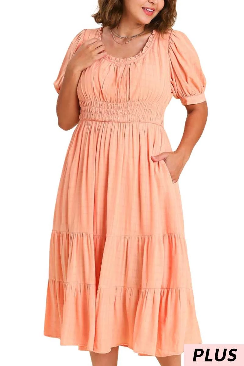 LD-C {Living The Life} Umgee Peach Smocked Detail Dress PLUS SIZE XL 1X 2X