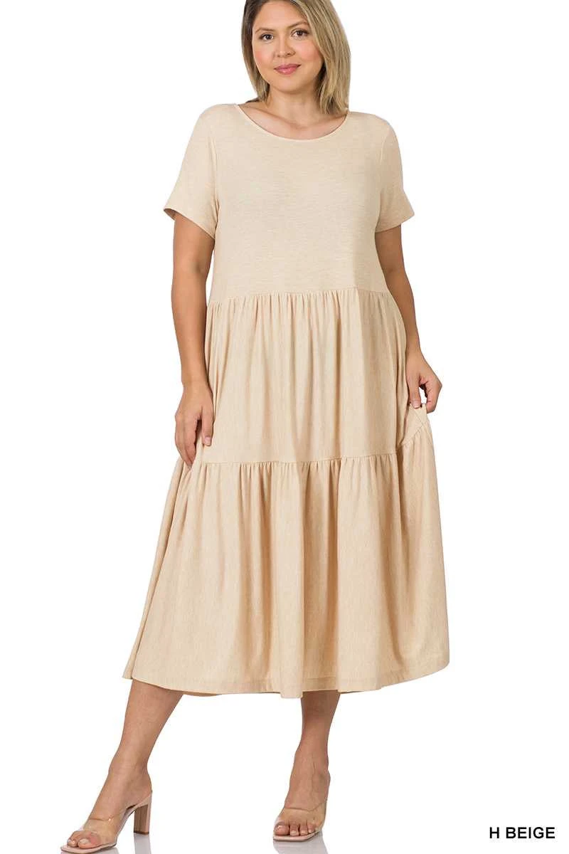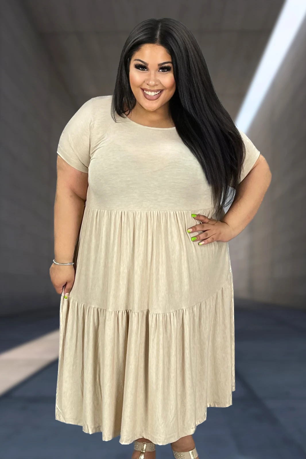 LD-C {Wardrobe Classic} Heather Beige Tiered Midi Dress PLUS SIZE 1X 2X 3X