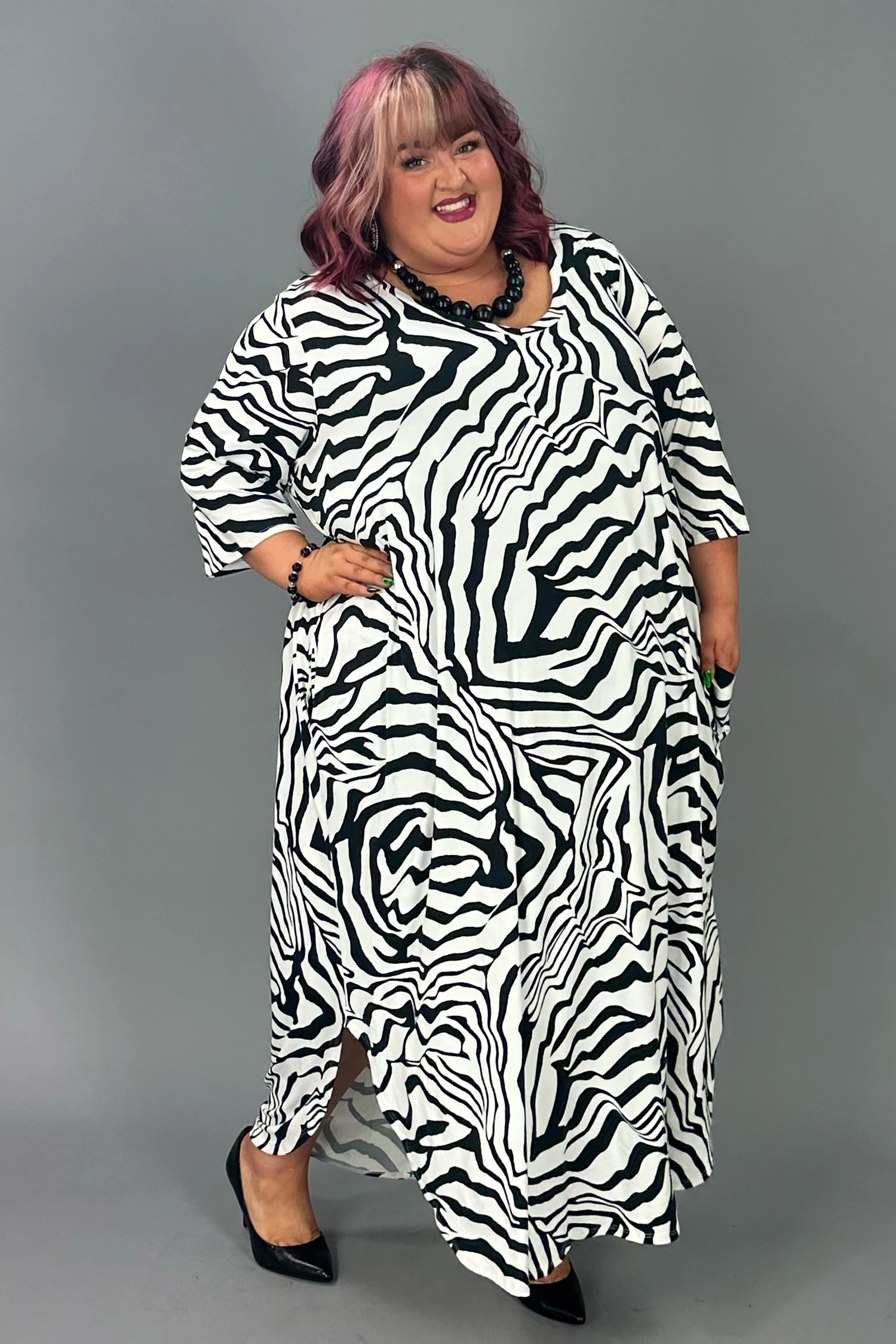 LD-K {Test The Water} Black/Ivory Zebra Print Maxi Dress CURVY BRAND!!! EXTENDED PLUS SIZE 4X 5X 6X