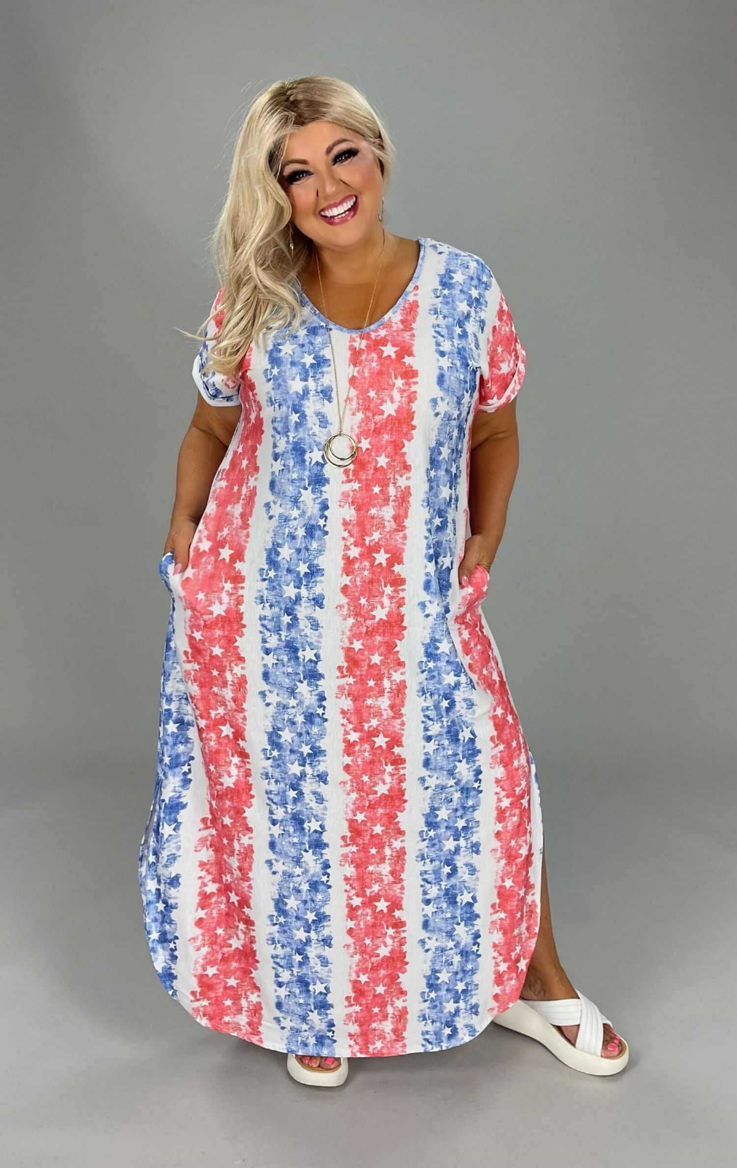 LD-K {The Flag Lives On} Red/White/Blue Flag Dress PLUS SIZE XL 2X 3X