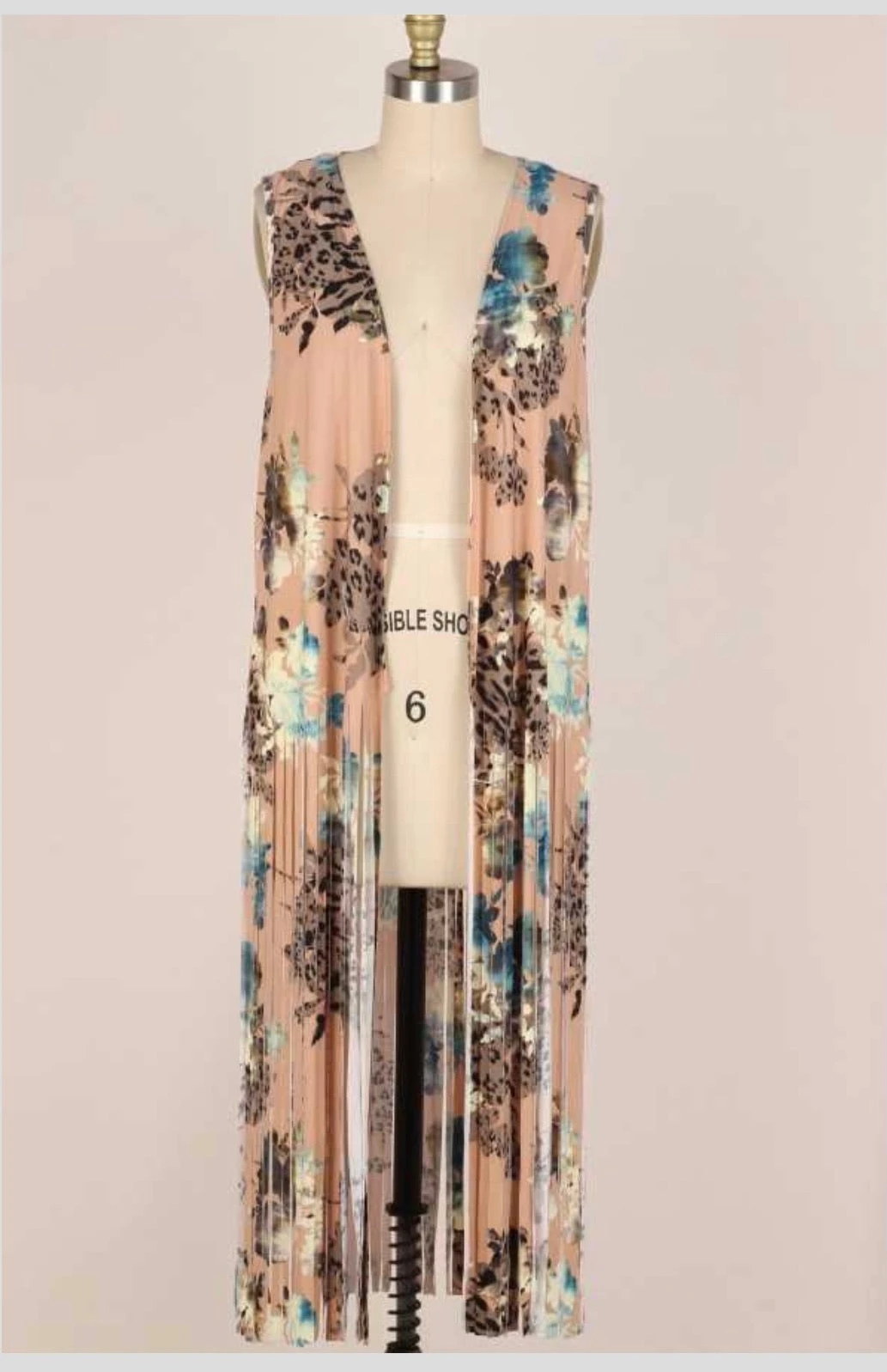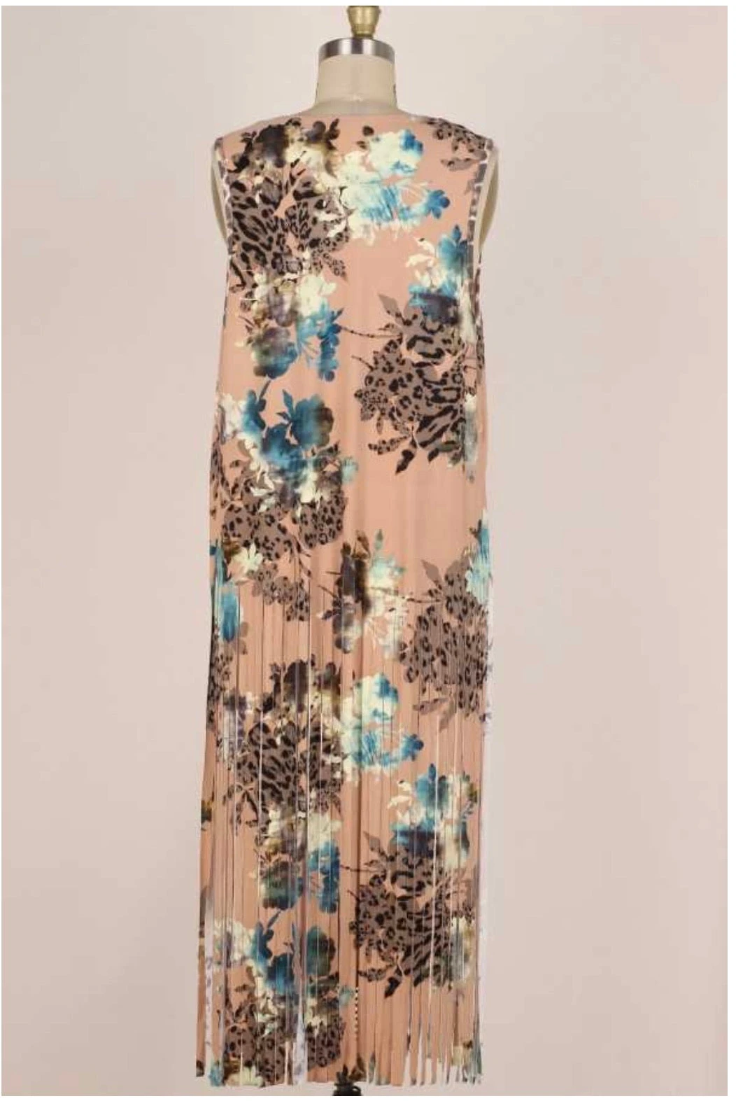 LD-N {Based On Fun} Tan/Blue Floral Vest W/Fringe SALE!!! PLUS SIZE 1X 2X 3X