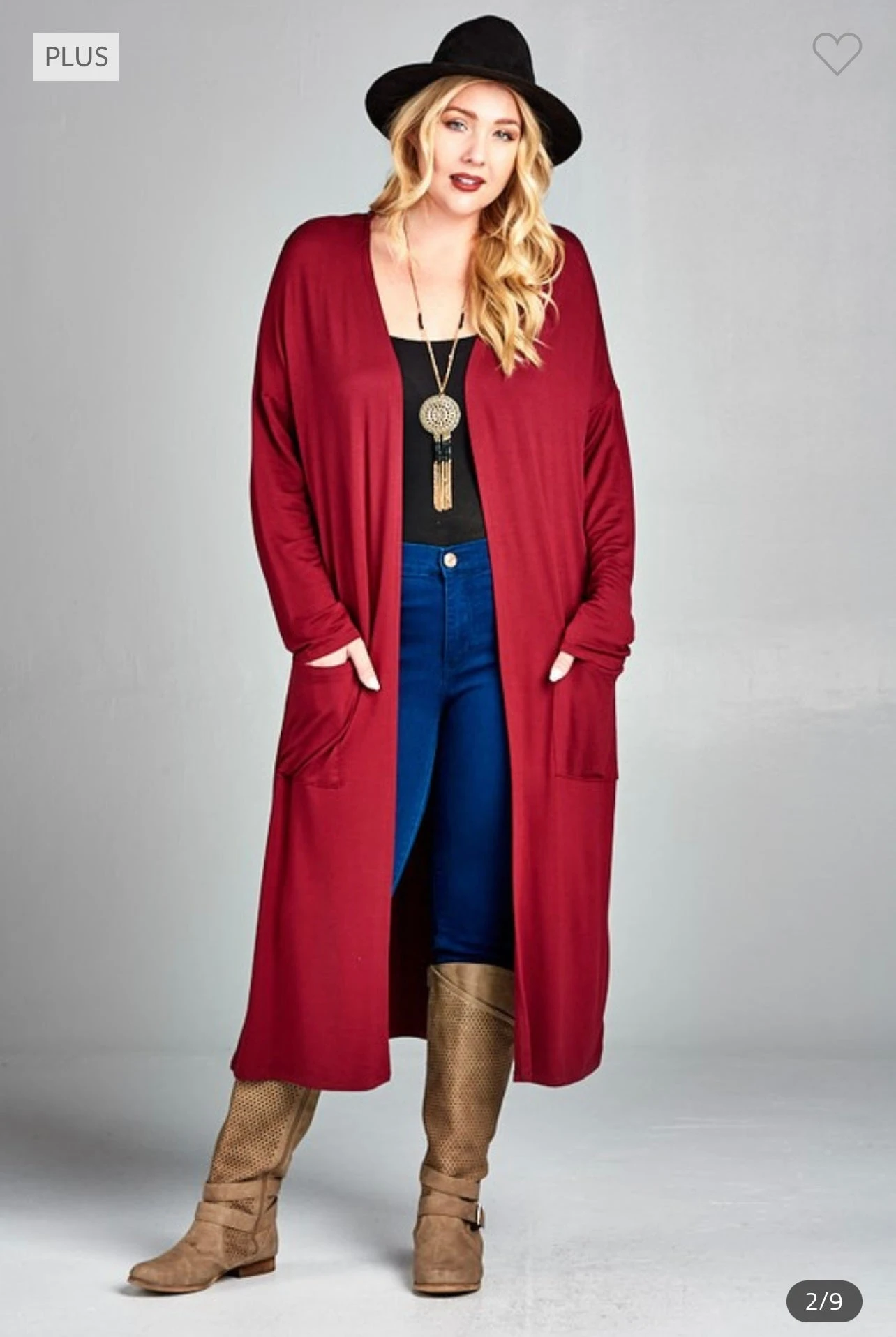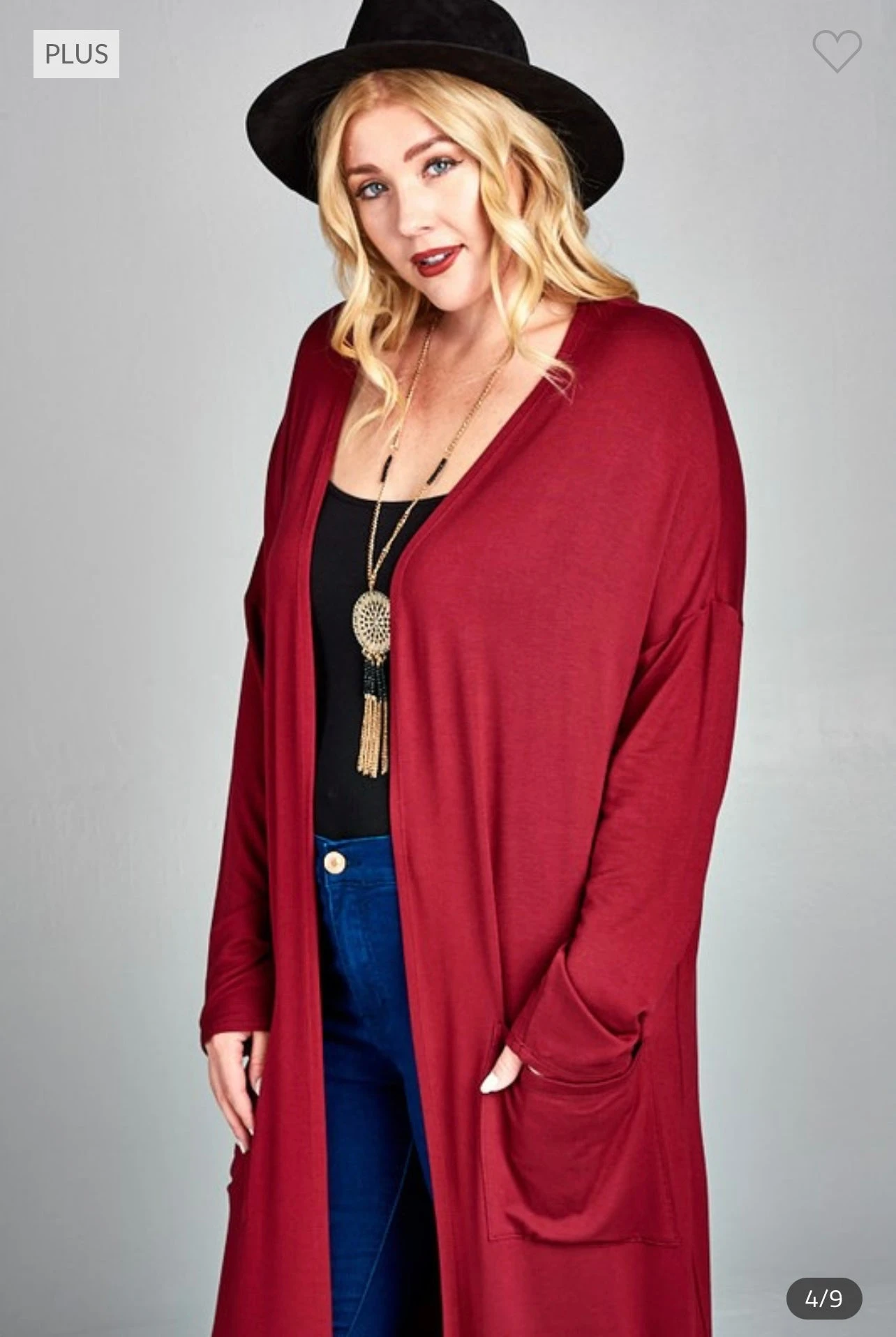 LD-Q {Class And Charm} Burgundy Long Duster W/Pockets PLUS SIZE XL 2X 3X