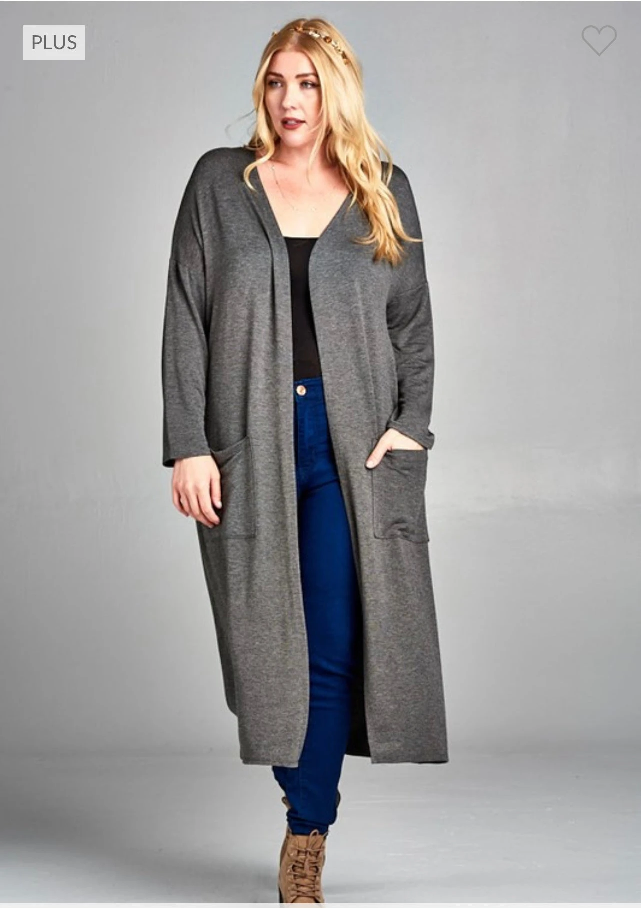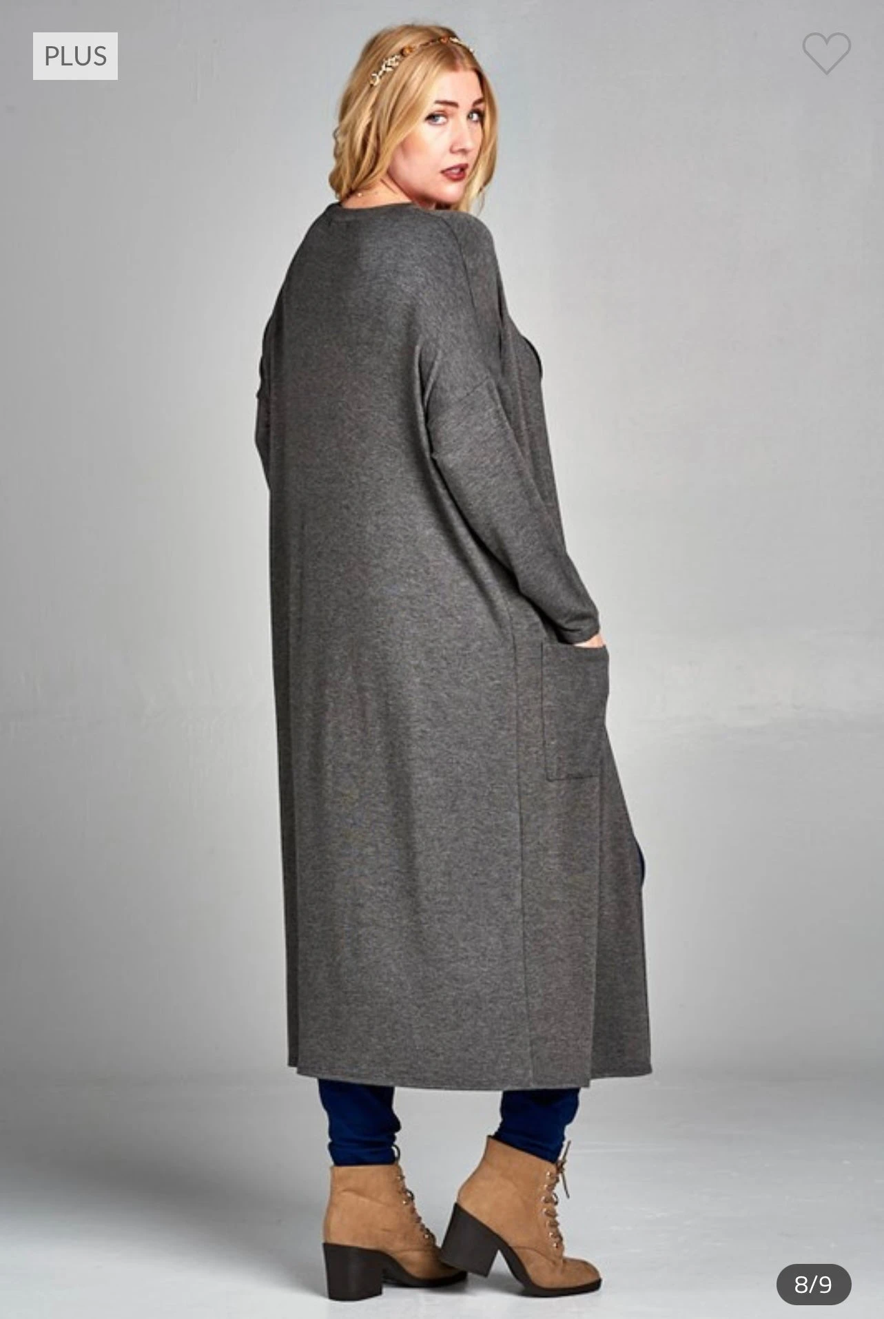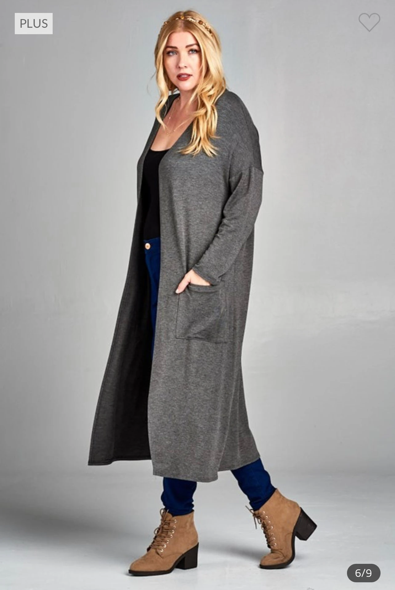 LD-Q {Class And Charm} Charcoal Long Duster W/Pockets PLUS SIZE XL 2X 3X