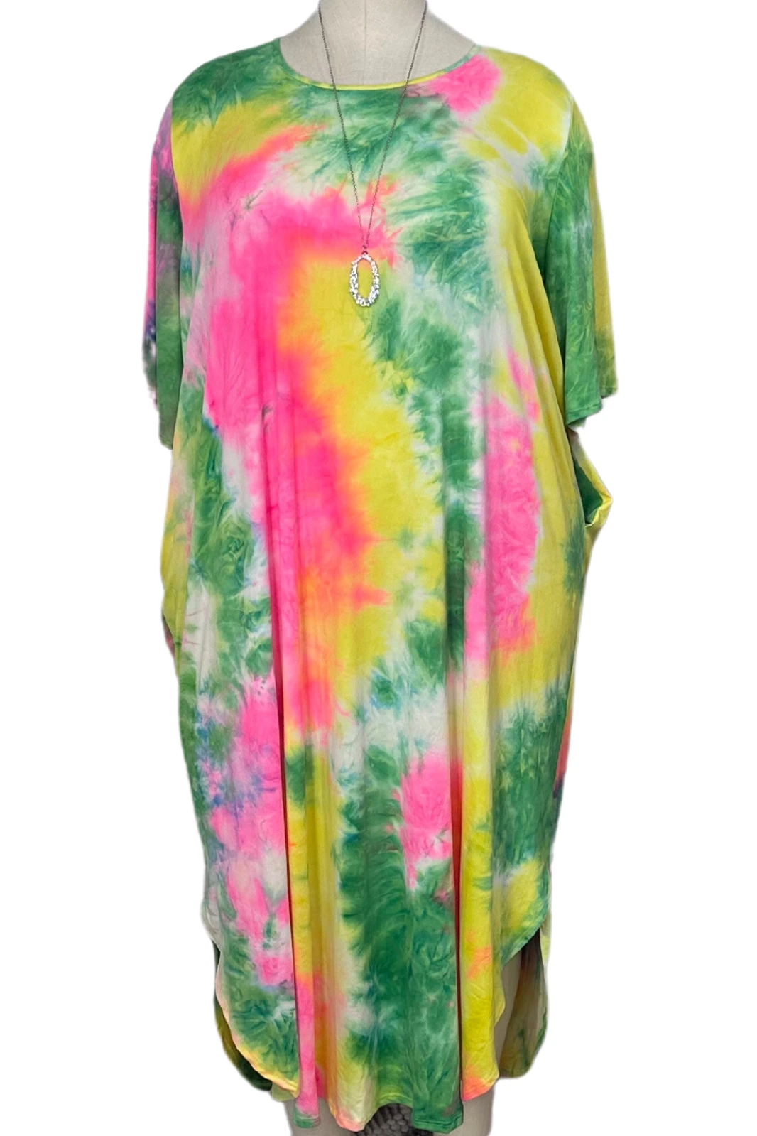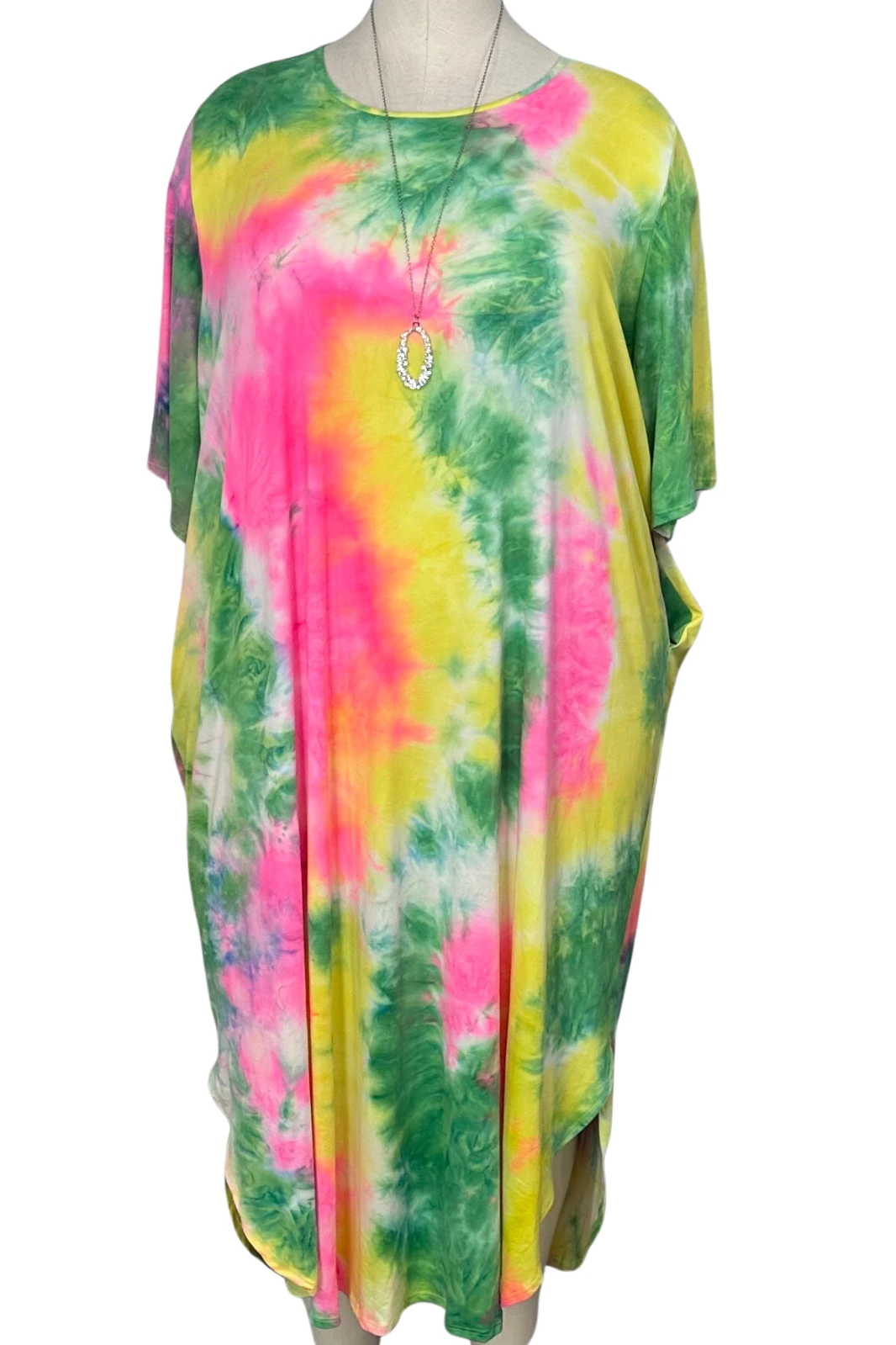 LD-S {In My Element} Yellow/Green Tie Dye Maxi Dress CURVY BRAND!!! EXTENDED PLUS SIZE XL 2X 3X 4X 5X 6X