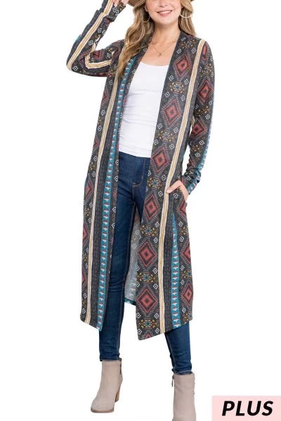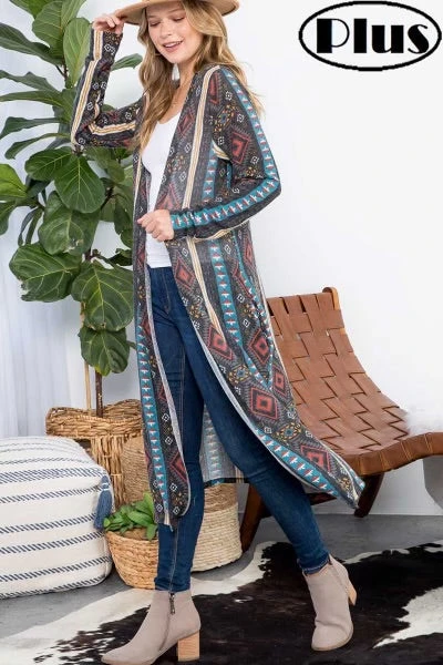 LD-U OR 53 OT-U {Realized Fun} Multi-Color Aztec Print Duster PLUS SIZE 1X 2X 3X