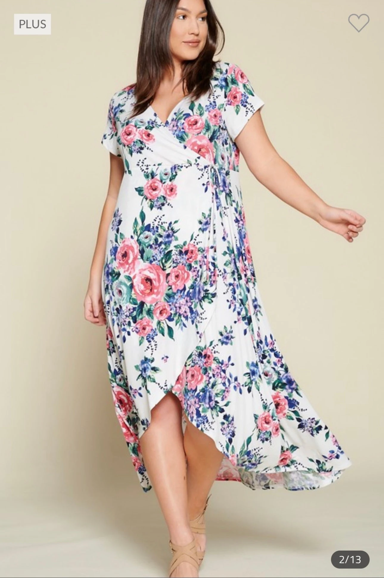 LD-Z & N {Hard To Resist} Ivory Floral Wrap Maxi Dress PLUS SIZE 1X 2X 3X