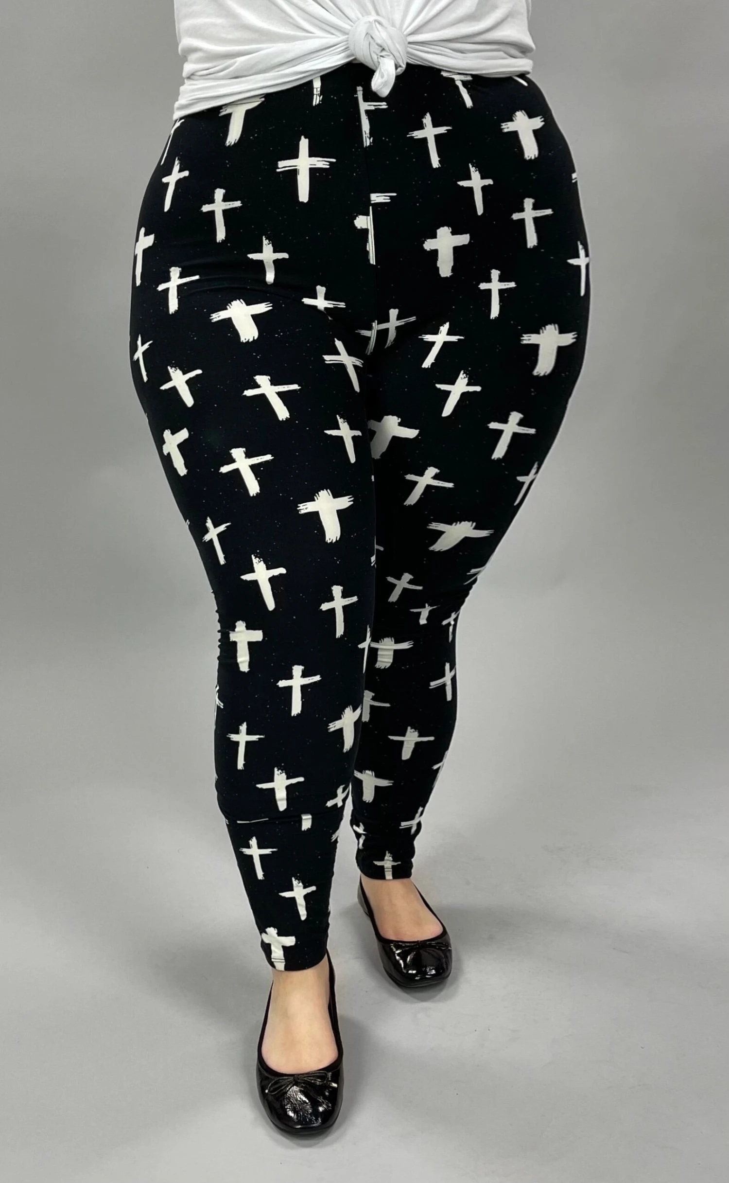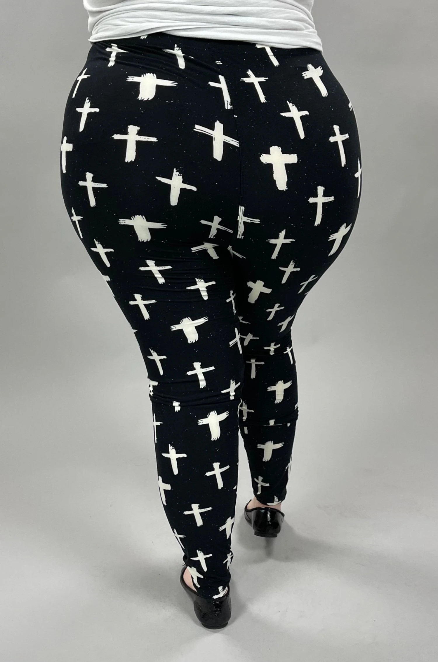 LEG-13 {Glamorous Crosses} Cross Printed Black Leggings EXTENDED PLUS SIZE