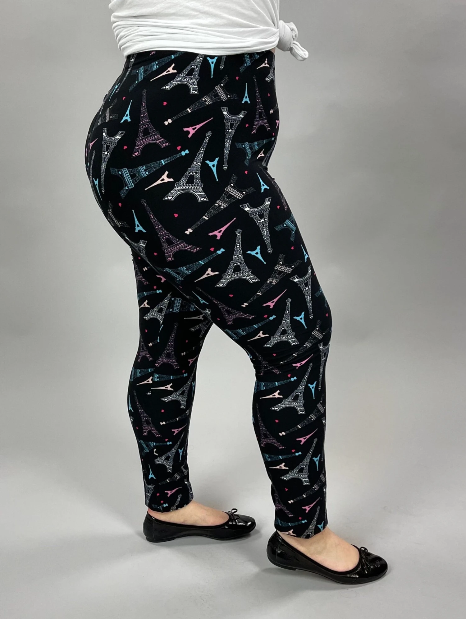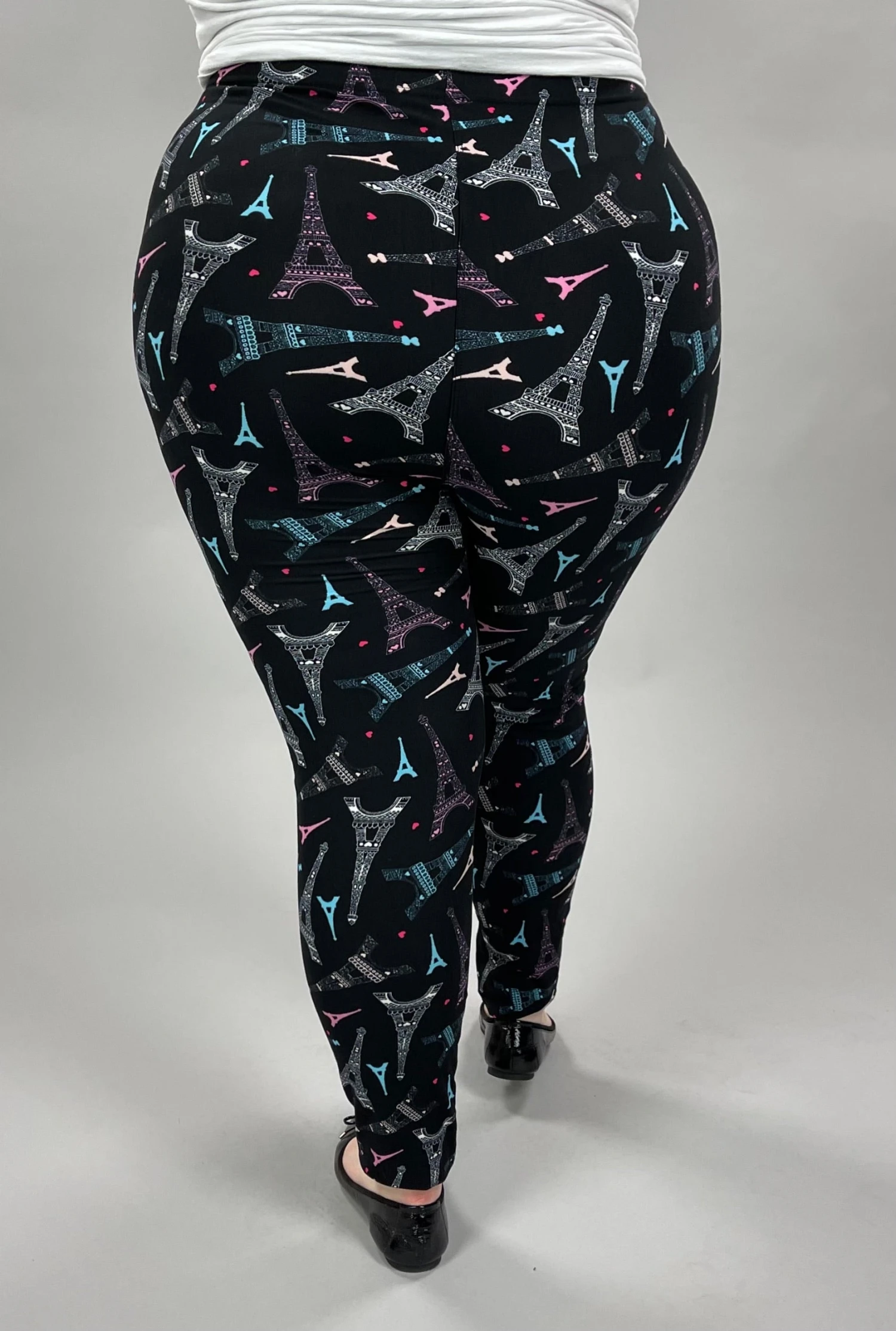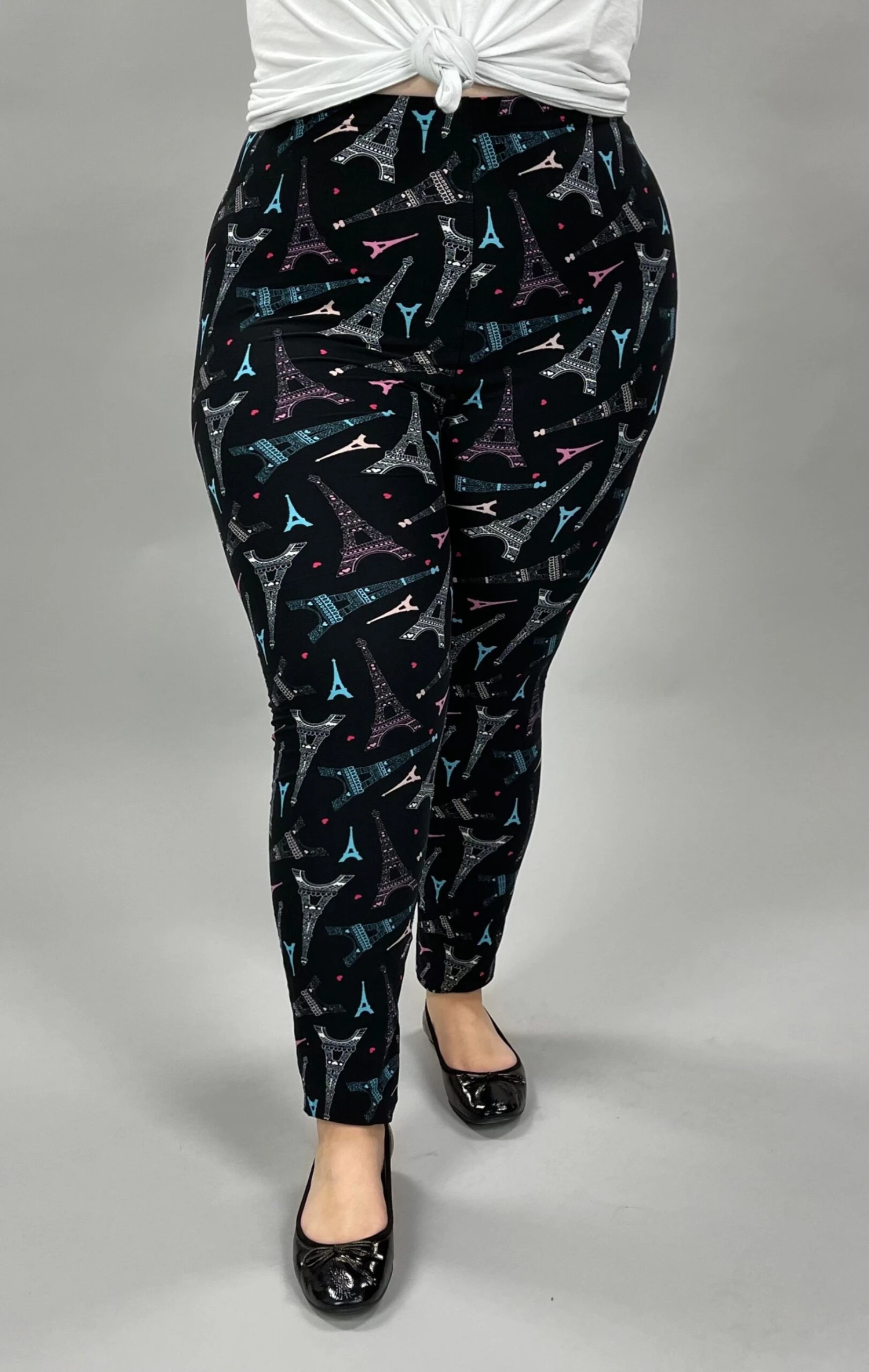 LEG-19 {Dreams Of Paris} Eiffel Tower Printed Leggings EXTENDED PLUS SIZE