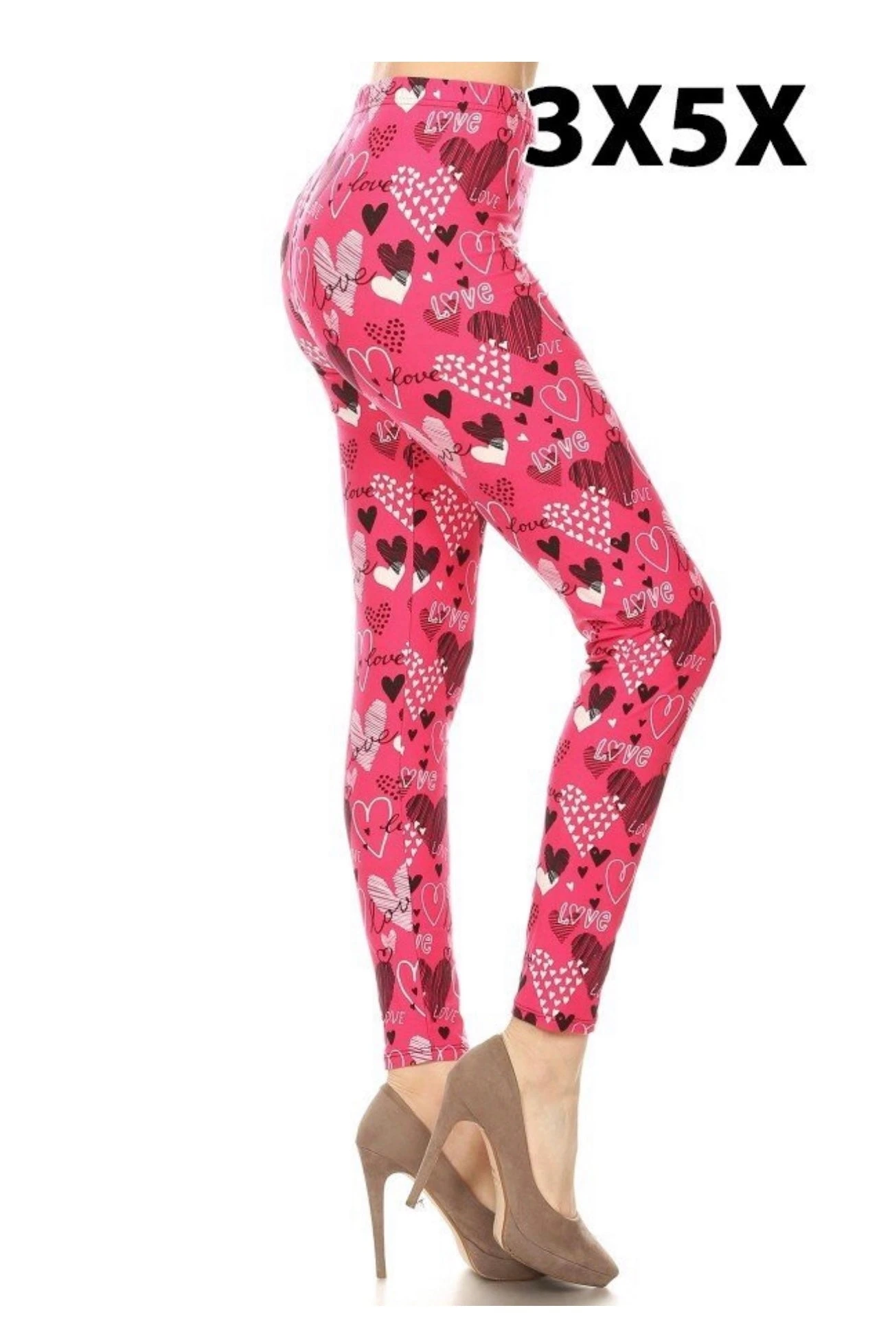 LEG-2 {Heart And Soul} Pink Print Leggings W/Hearts EXTENDED PLUS SIZE 3X/5X