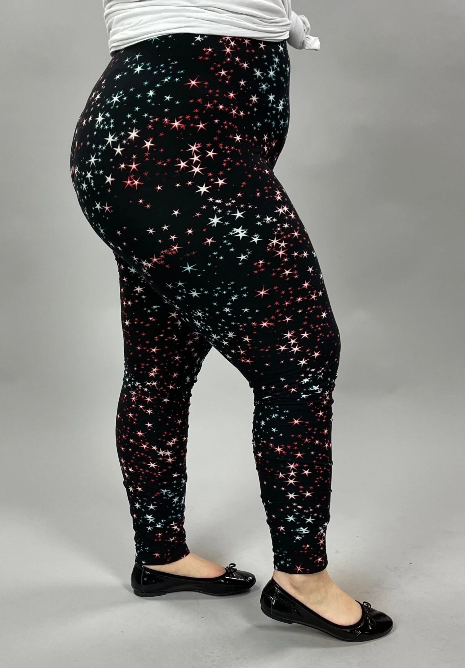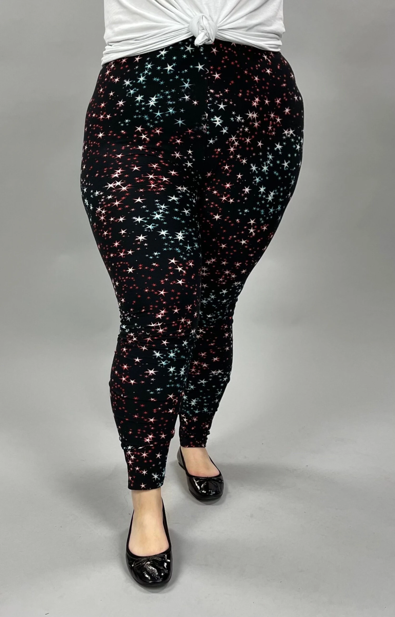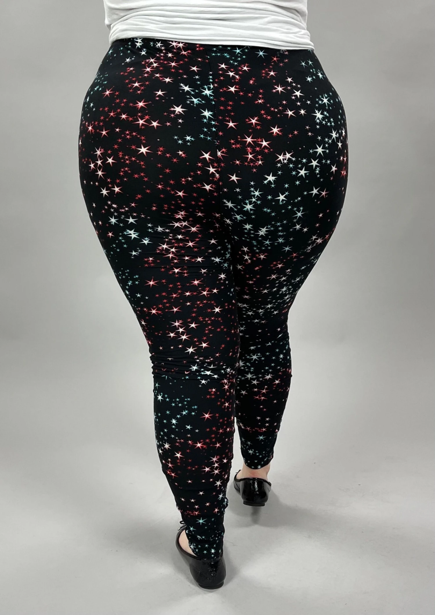 LEG-24 {Star Dreamer} Black/Red Star Print Leggings EXTENDED PLUS SIZE 3X/5X