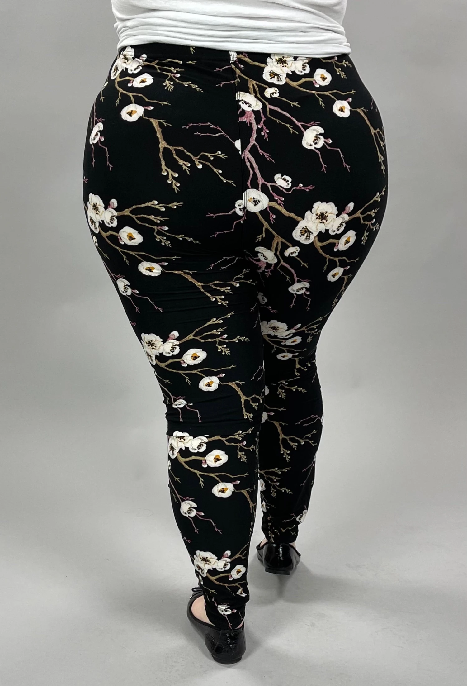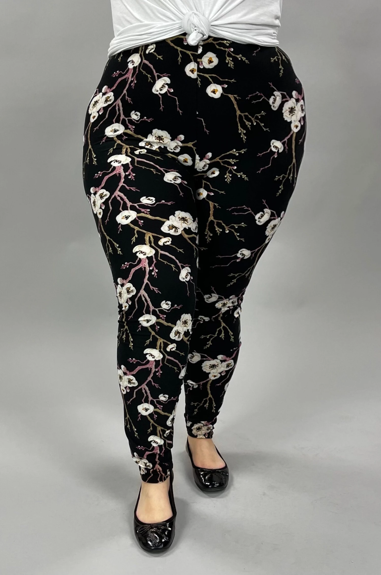 LEG-28 {Blooming Apple} White Floral Printed Leggings EXTENDED PLUS SIZE