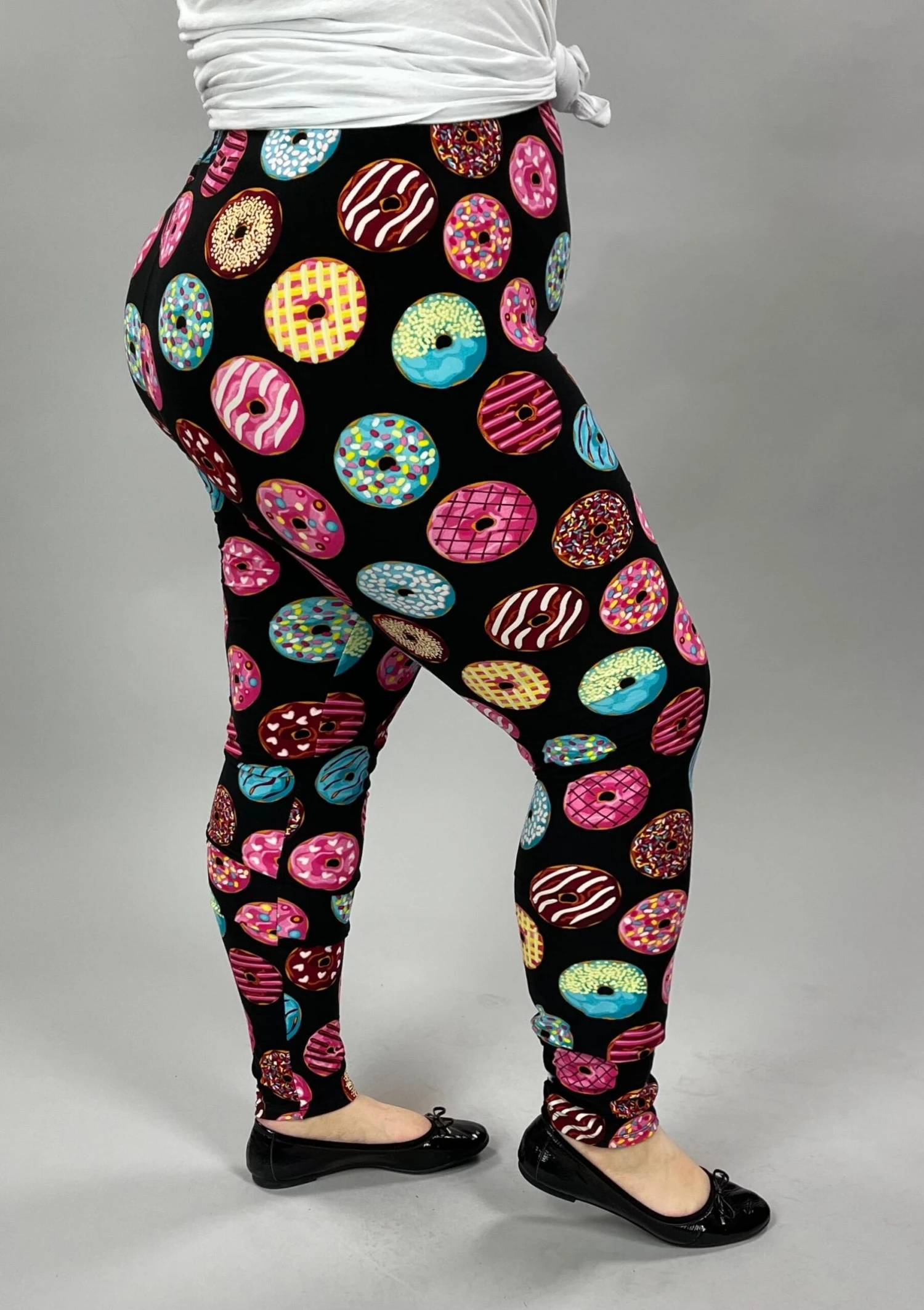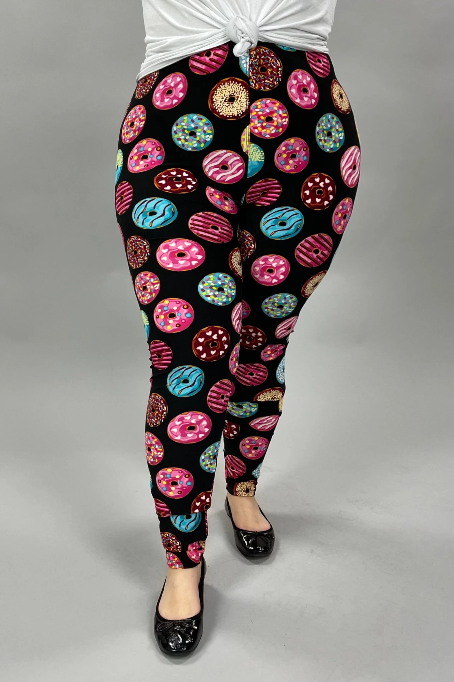 LEG-28 {Donut Shop} Donut Printed Black Leggings EXTENDED PLUS SIZE