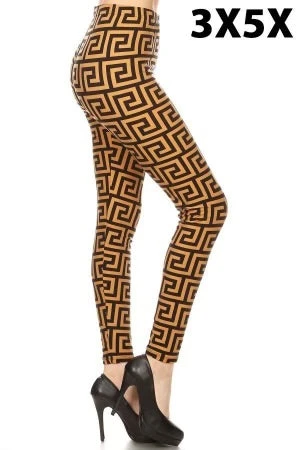 LEG-30 {Clear To Move On} Mocha Meander Print Leggings EXTENDED PLUS SIZE 3X/5X