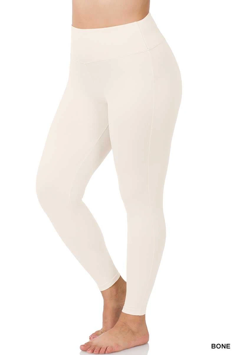 LEG-31 {Just The Cutest} Beige Wide Waistband Leggings PLUS SIZE 1X 2X 3X