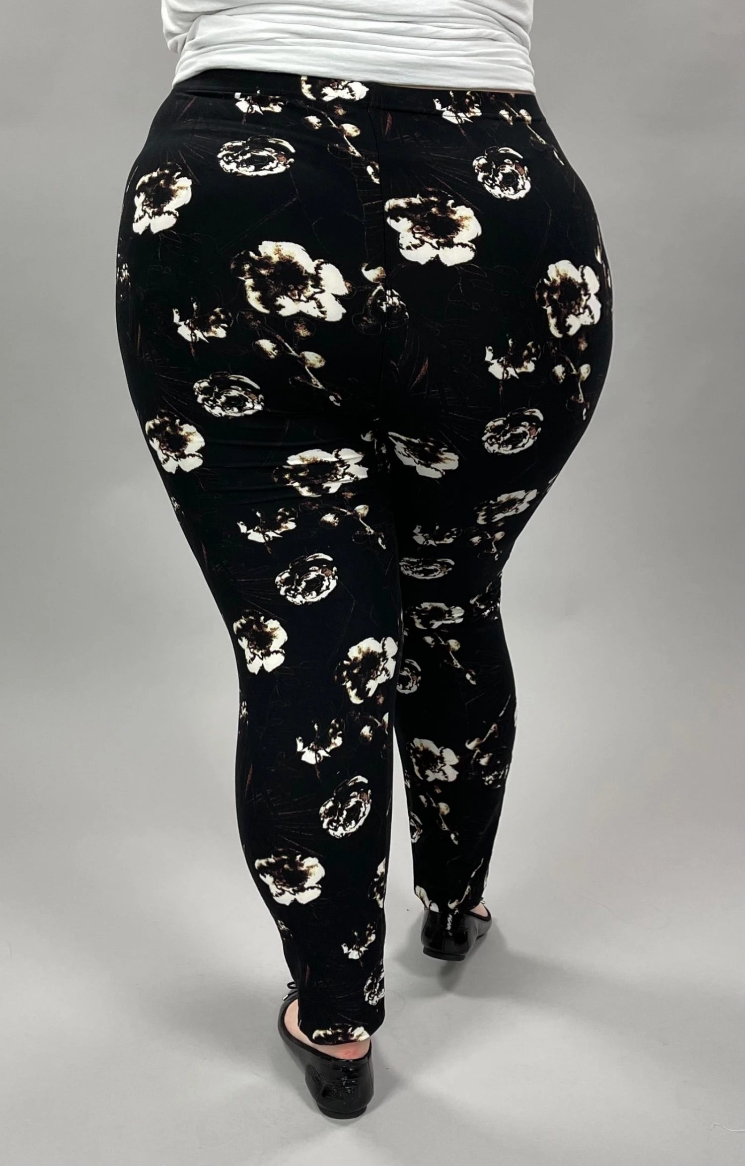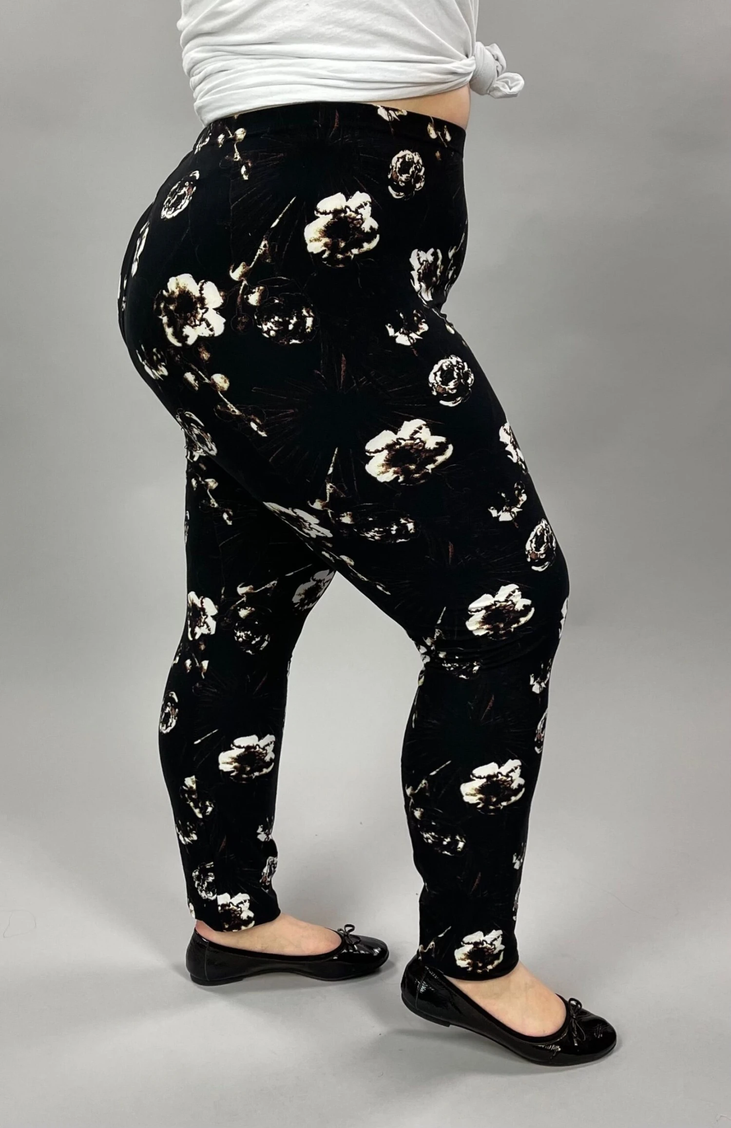 LEG-35 {The Thing Is} Black Floral Leggings EXTENDED PLUS SIZE 3X/5X