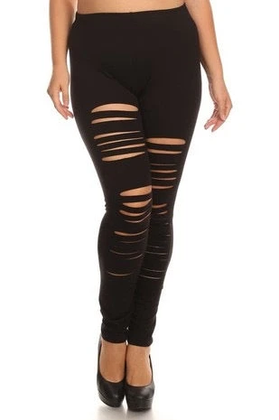 LEG-43 {Work In Progress} Black Laser Cut Leggings PLUS SIZE 1X 2X 3X