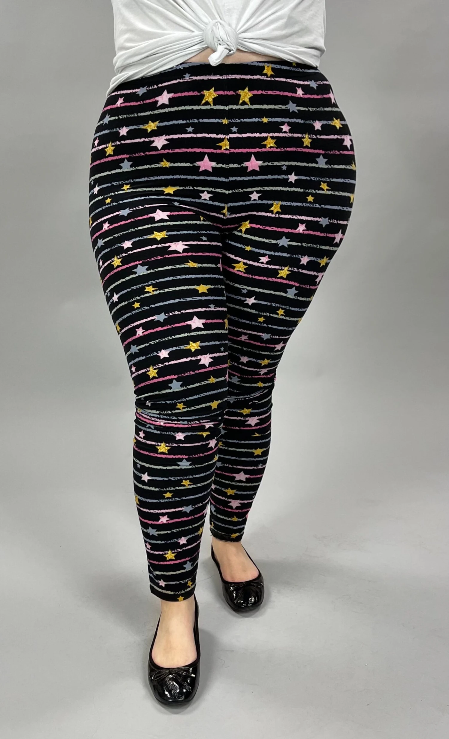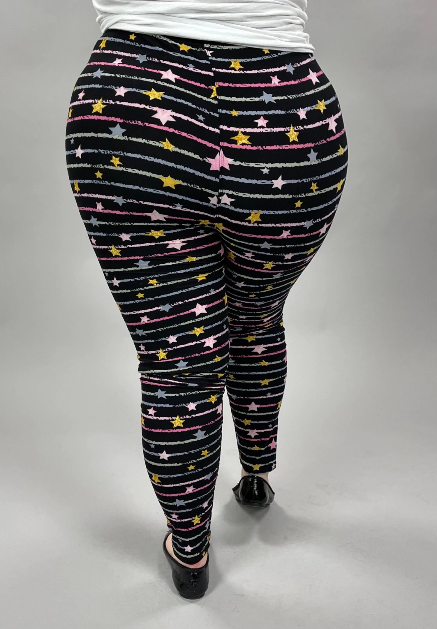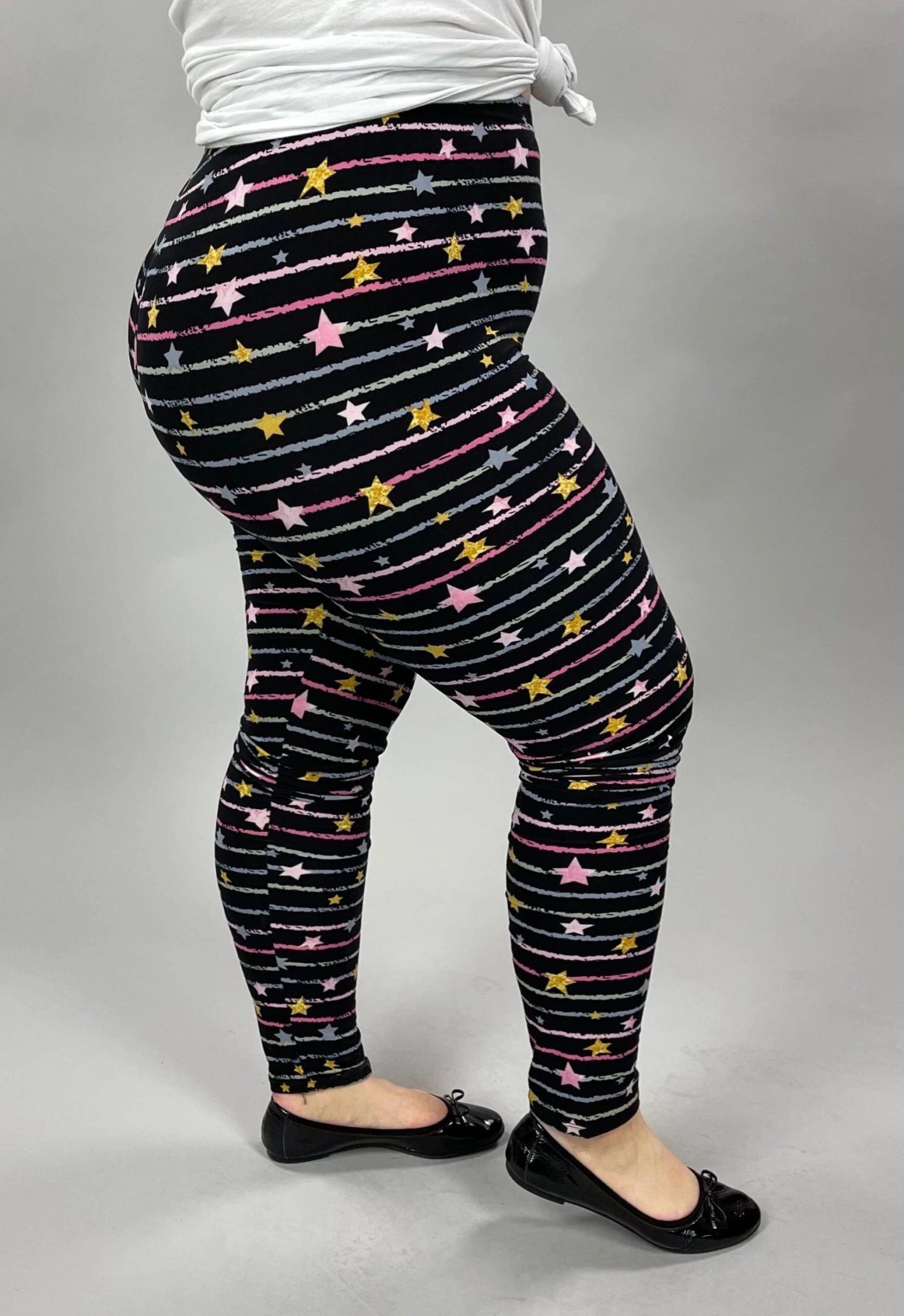 LEG-8 {Starry Skies} Stars & Stripes Black Printed Leggings EXTENDED PLUS SIZE