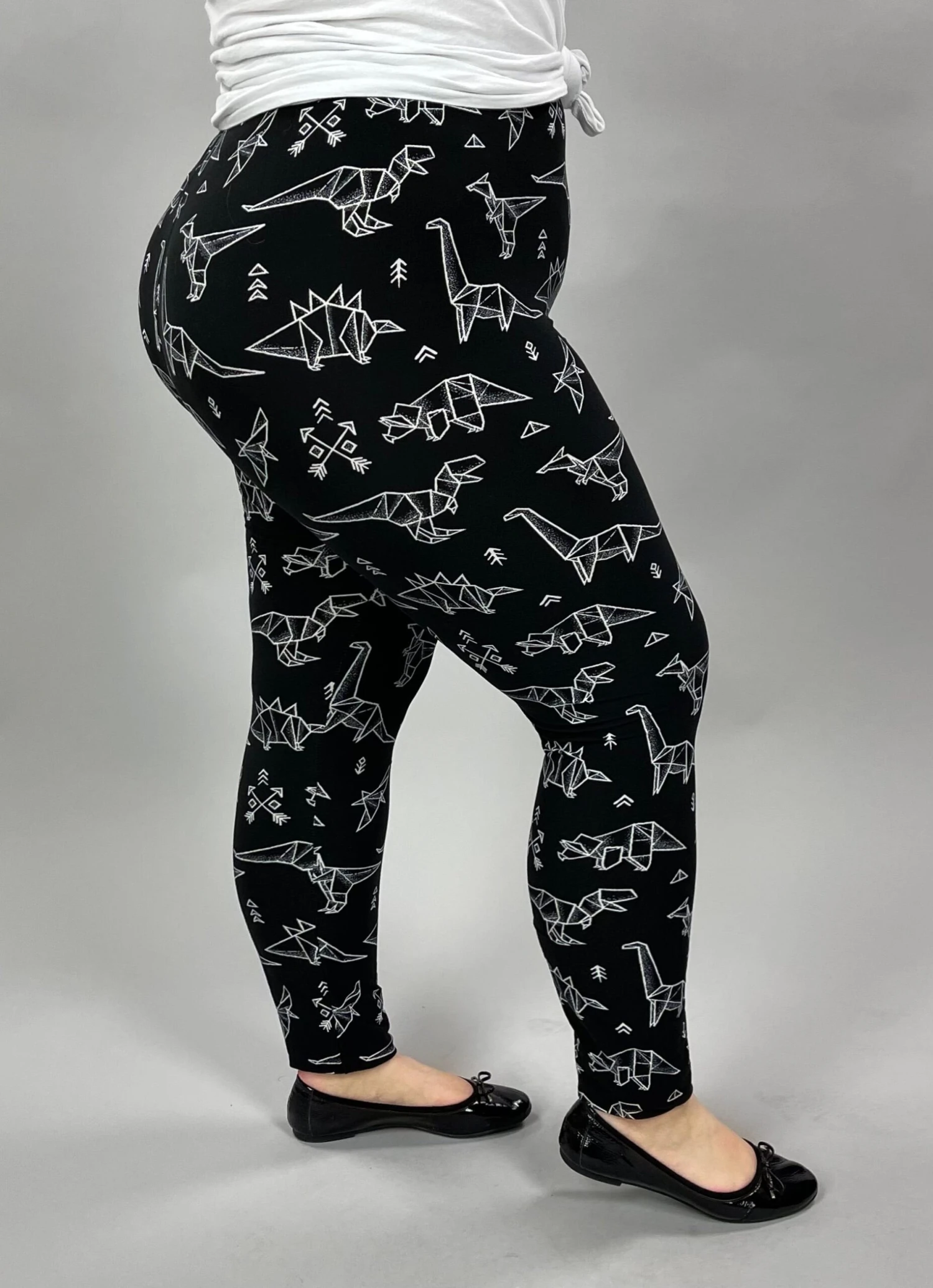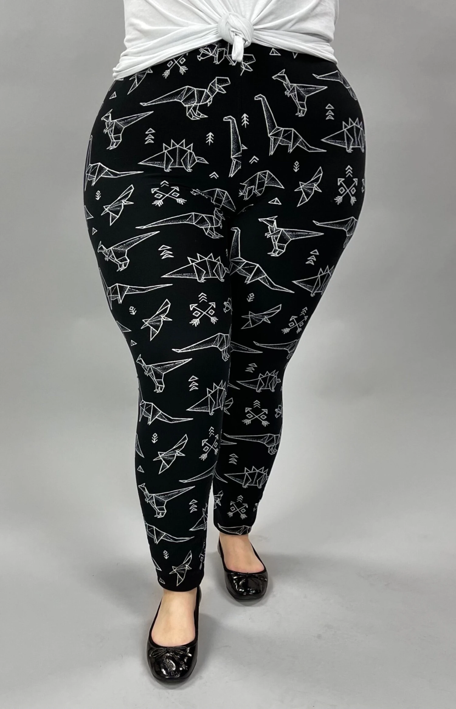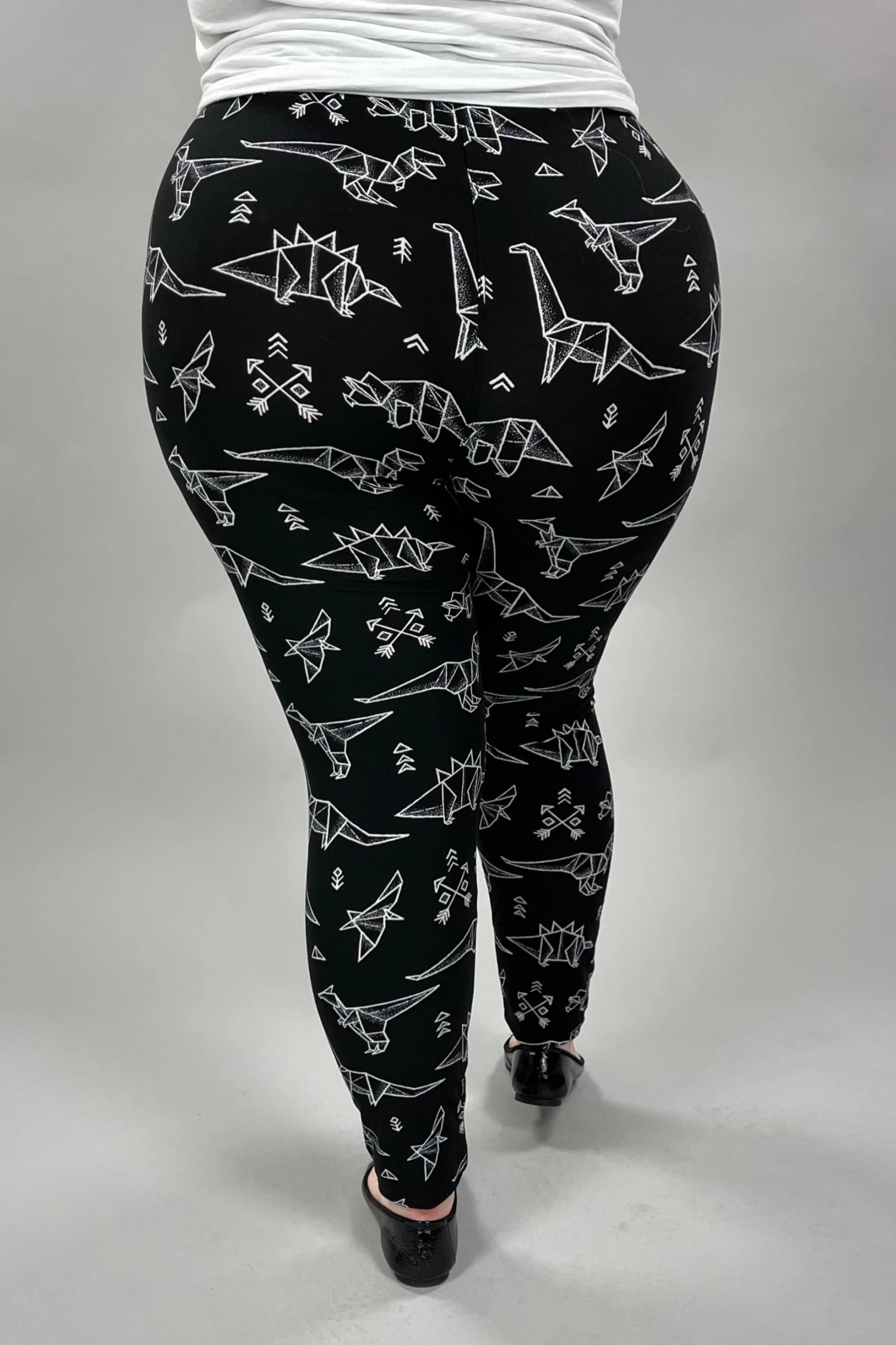 LEG-98 {Dino} Black Dinosaur Print Leggings EXTENDED PLUS SIZE 3X/5X