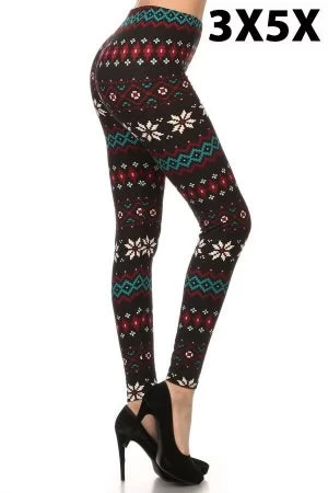LEG-98 {Under The Pines} Black Snowflake Print Leggings EXTENDED PLUS SIZE 3X/5X