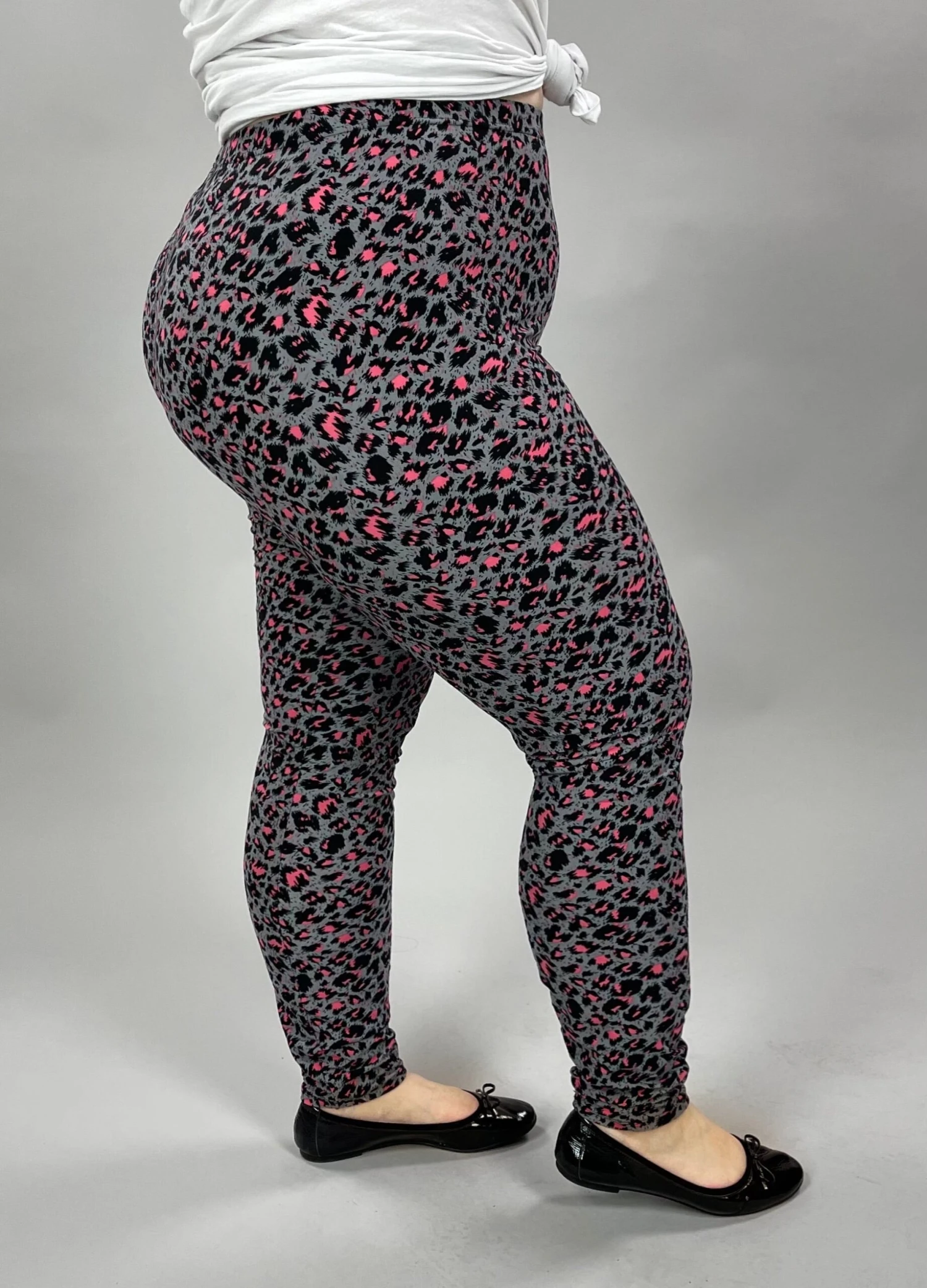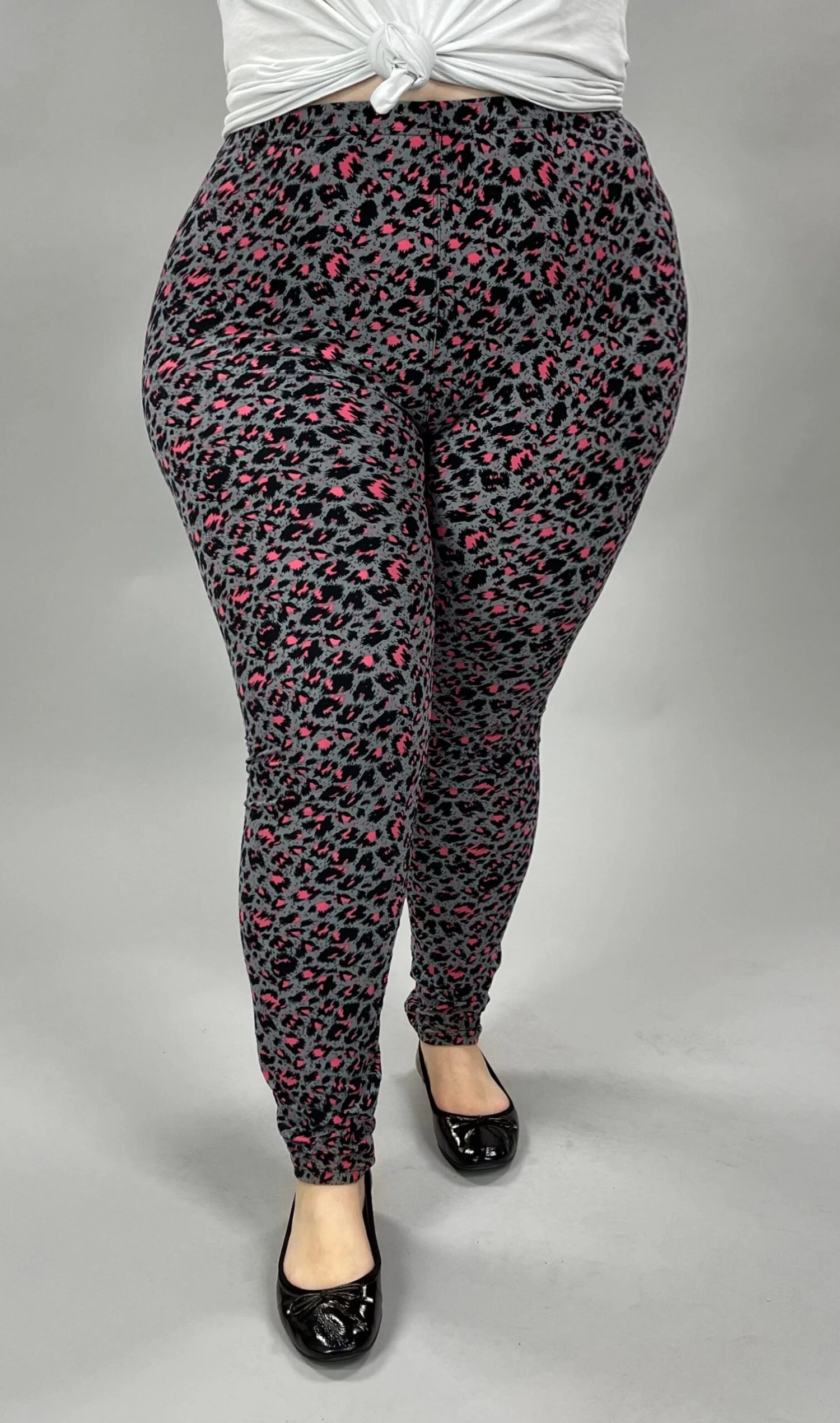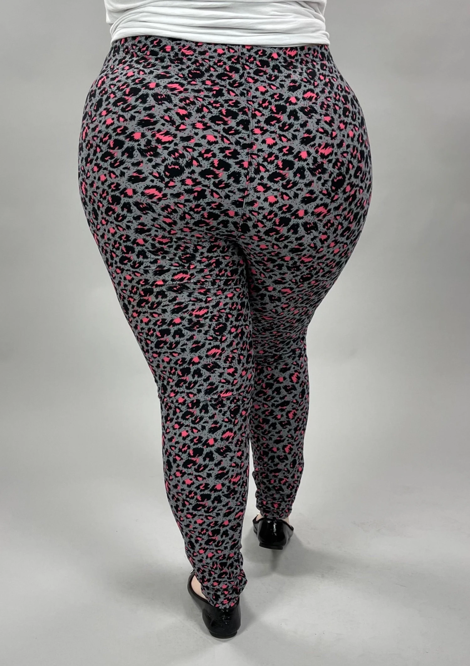 LEG-L {Leopard Life} Grey/Pink Leopard Printed Leggings EXTENDED PLUS SIZE