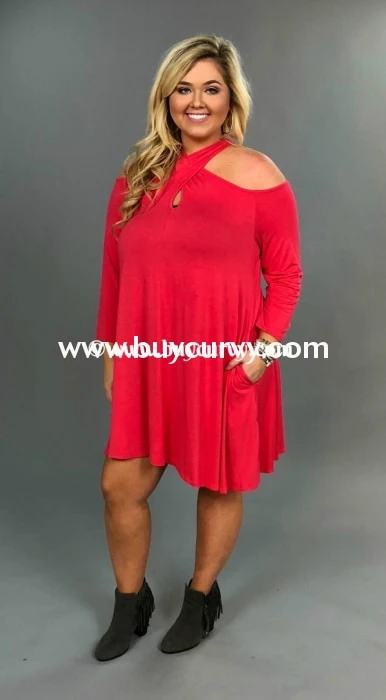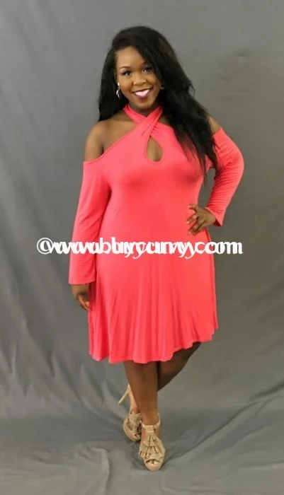 OS-J {My Own Way} Cold-Shoulder Coral Keyhole Dress