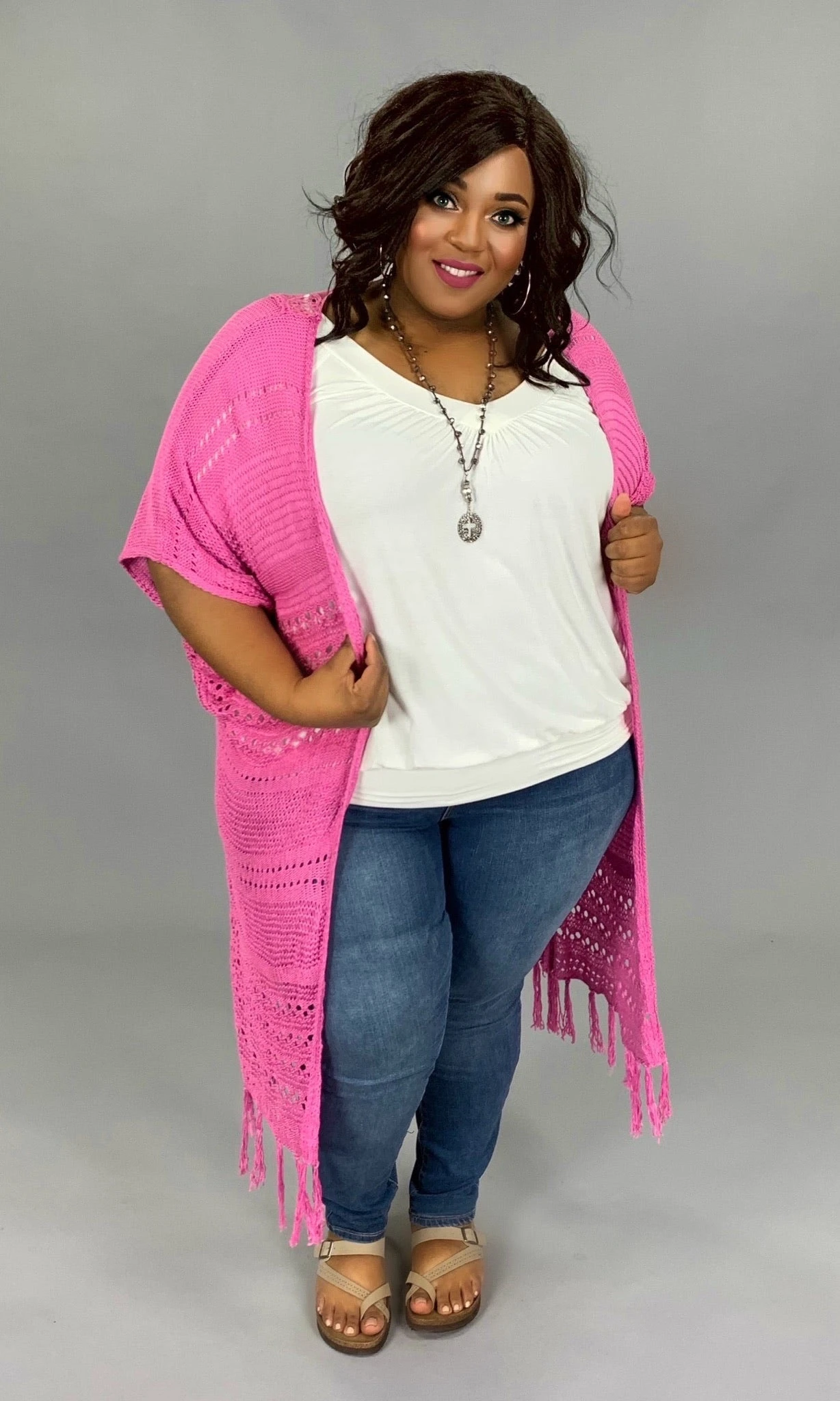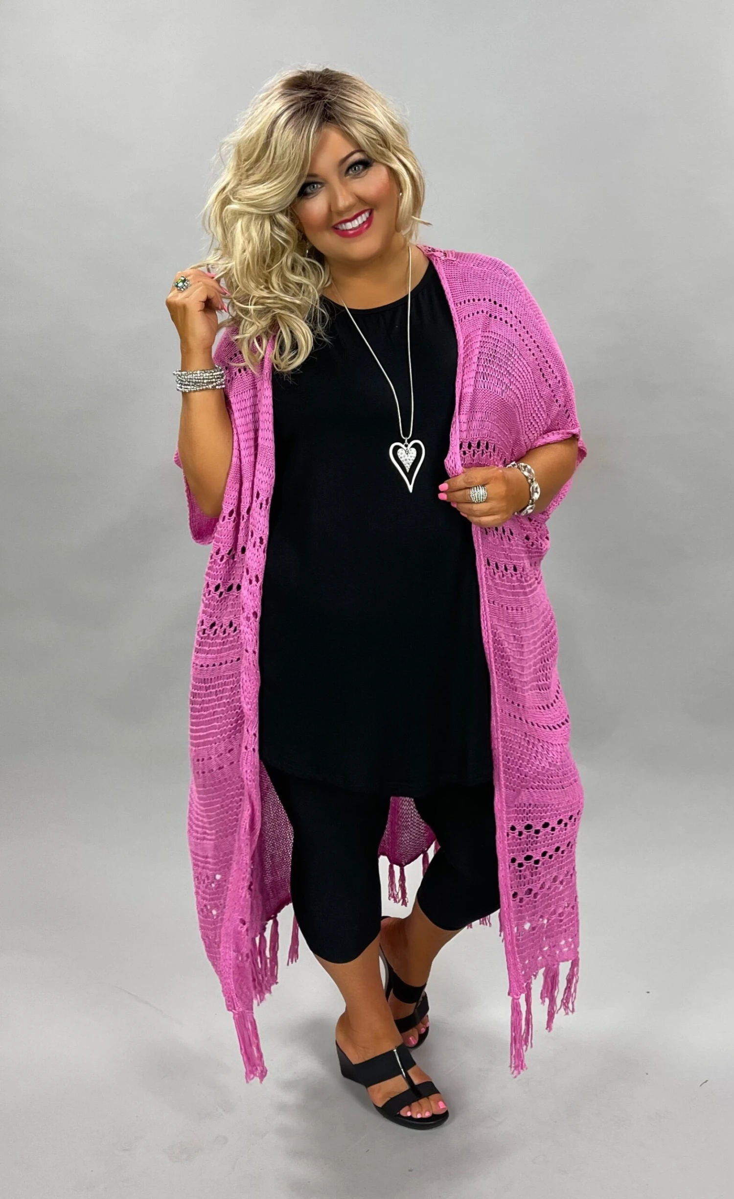 OT-B {MimosaLane} Lt. Orchid Cardigan With Fringe Detail With Back Lace Insert PLUS SIZE 1X 2X 3X