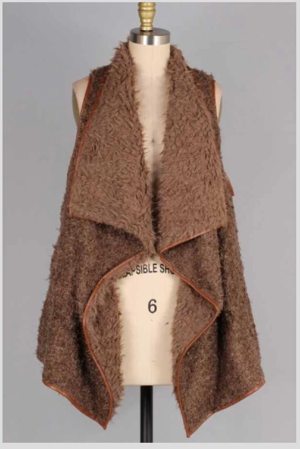 OT-F {Playful Attention} SALE! Mocha Loose Fit Faux Fur Vest PLUS SIZE 1X 2X 3X