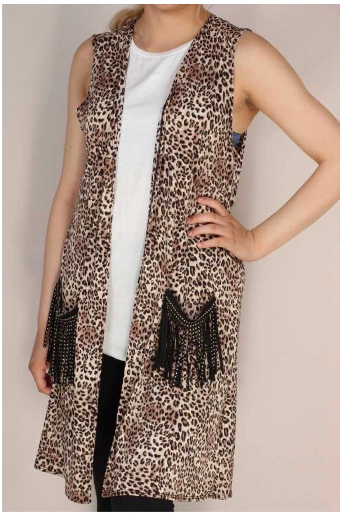 OT-Y{Winding Down} Leopard Vest *SALE* Black Stud Fringe Pockets