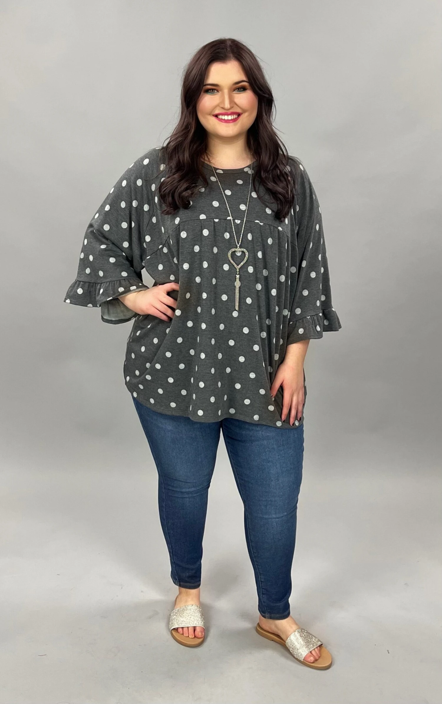 PQ- B”Let’s Get Real” Gray/Polka Dot Babydoll**