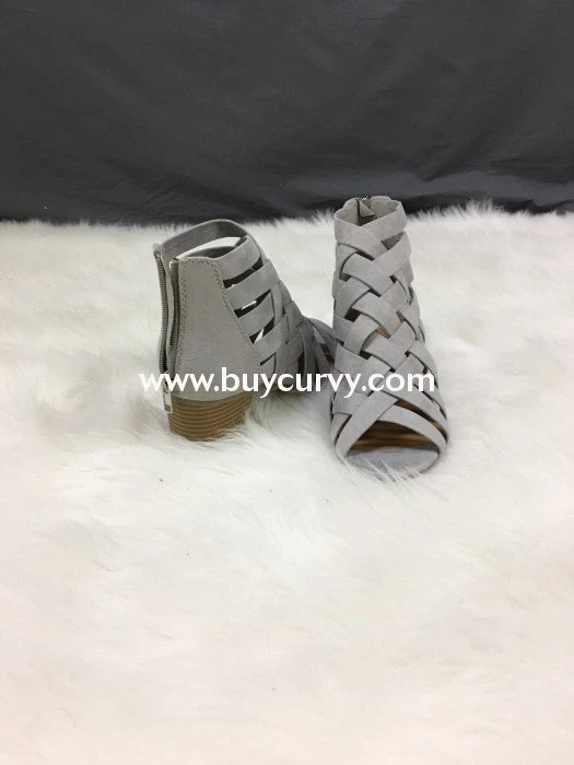 SHOES {City Classified} Gray Suede Booties With Woven Strap Detail