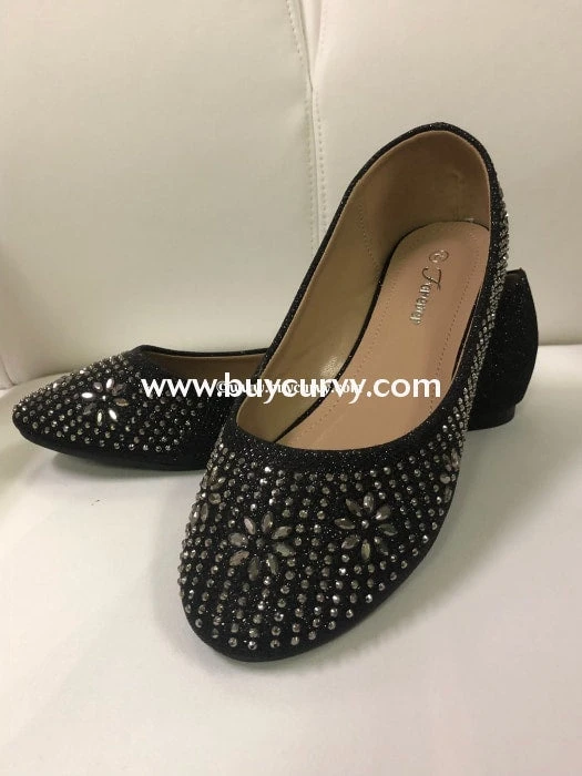 SHOES-“Forever” Black Flat Shoes with Rhinestones