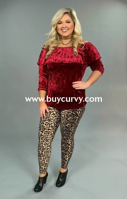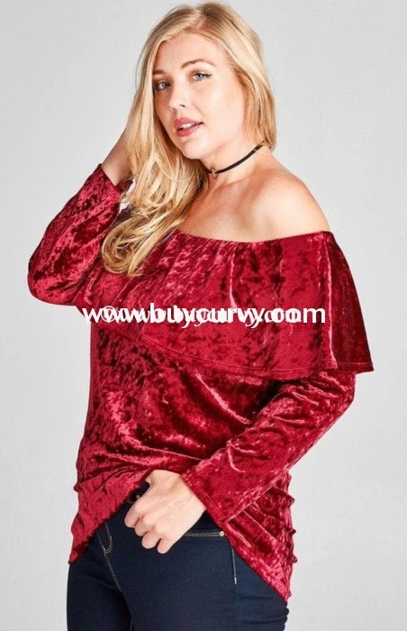 SQ-P Burgundy Crushed Velvet Top With Elastic Yoke Detail