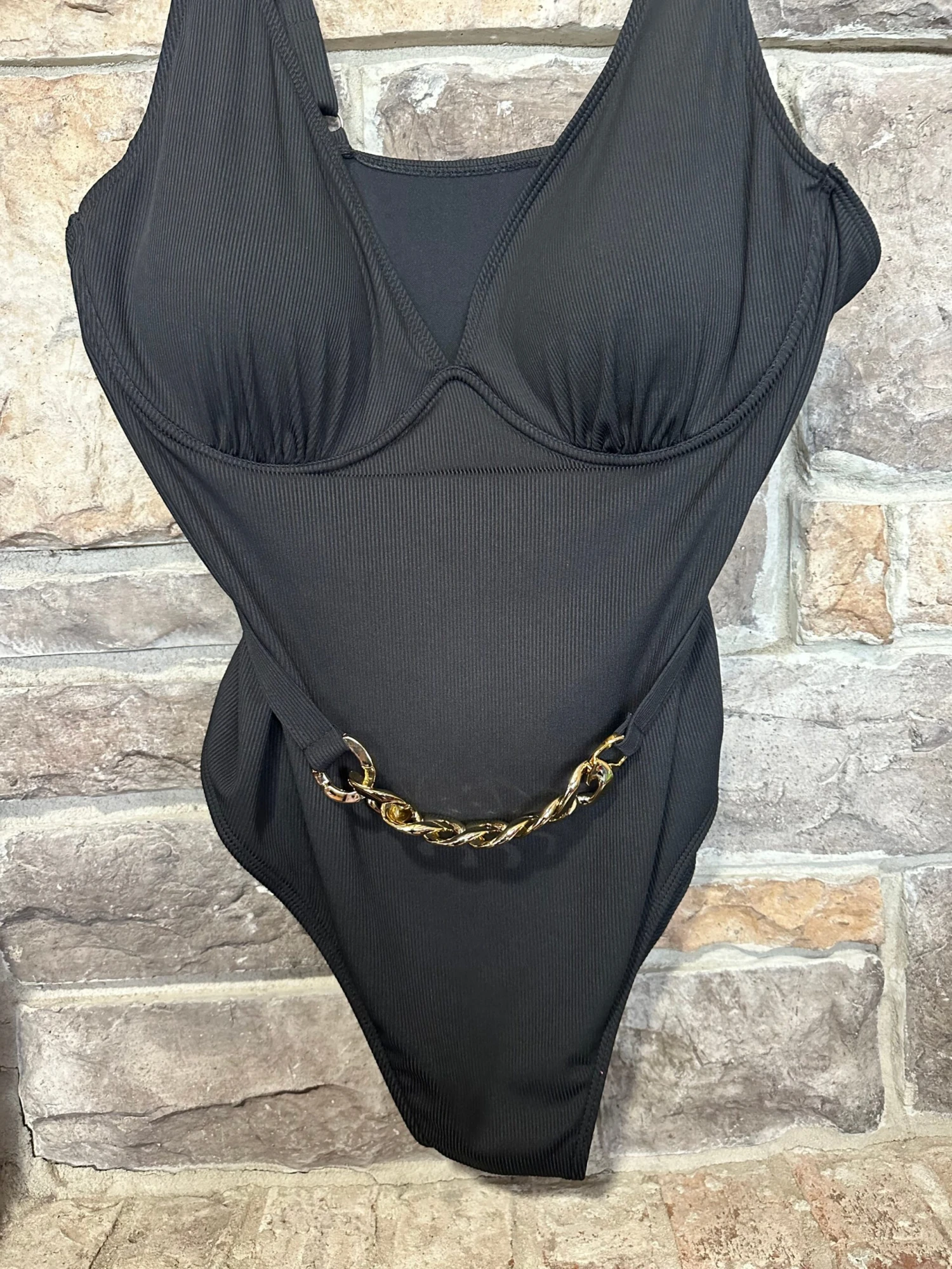 SWIM-F {Island Hopping} Black Belted One Piece Swimsuit SALE!!! EXTENDED PLUS SIZE 4X