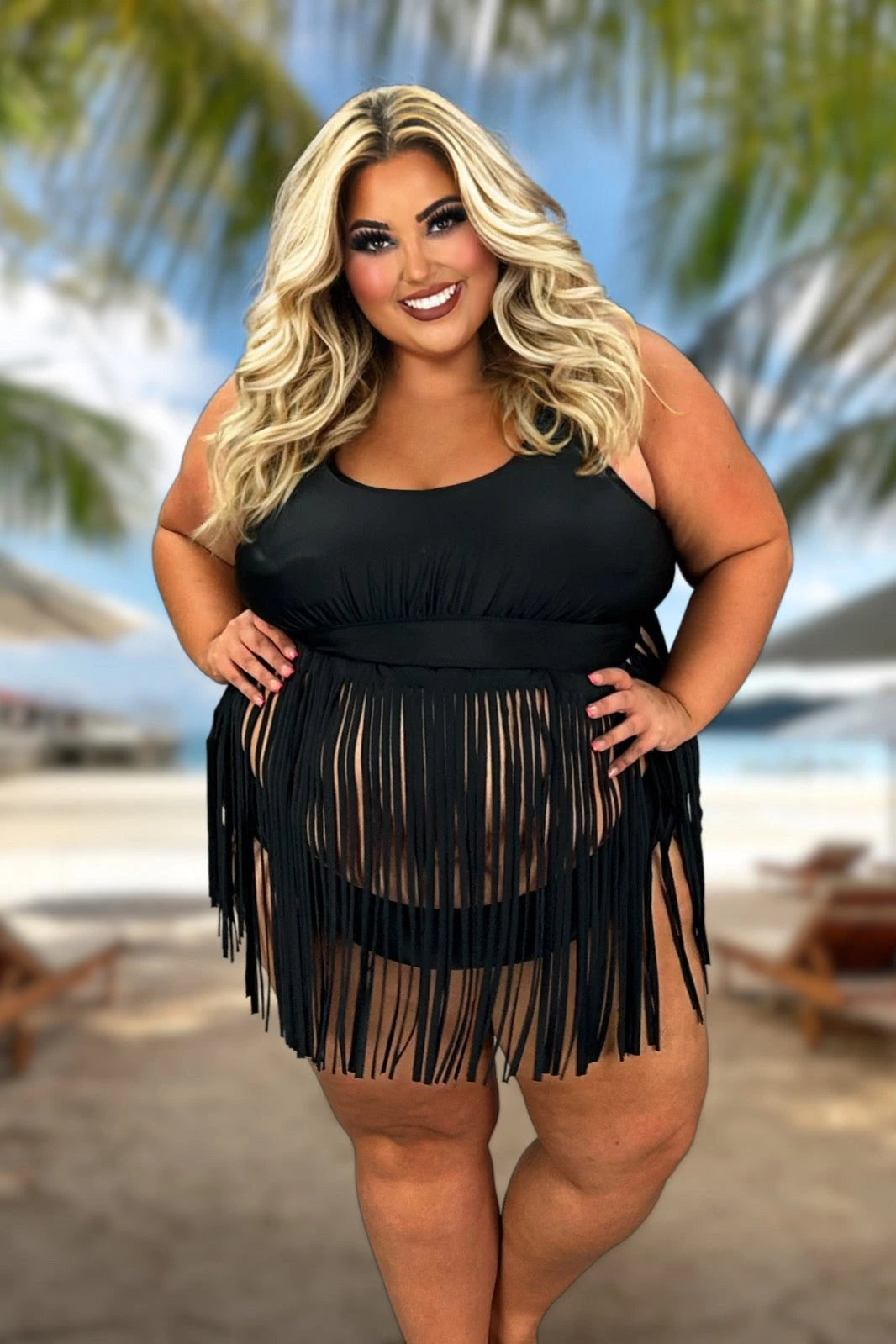 SWIM-M {Fringed Beauty} Black Fringe 2 Piece Swimsuit EXTENDED PLUS SIZE 4X