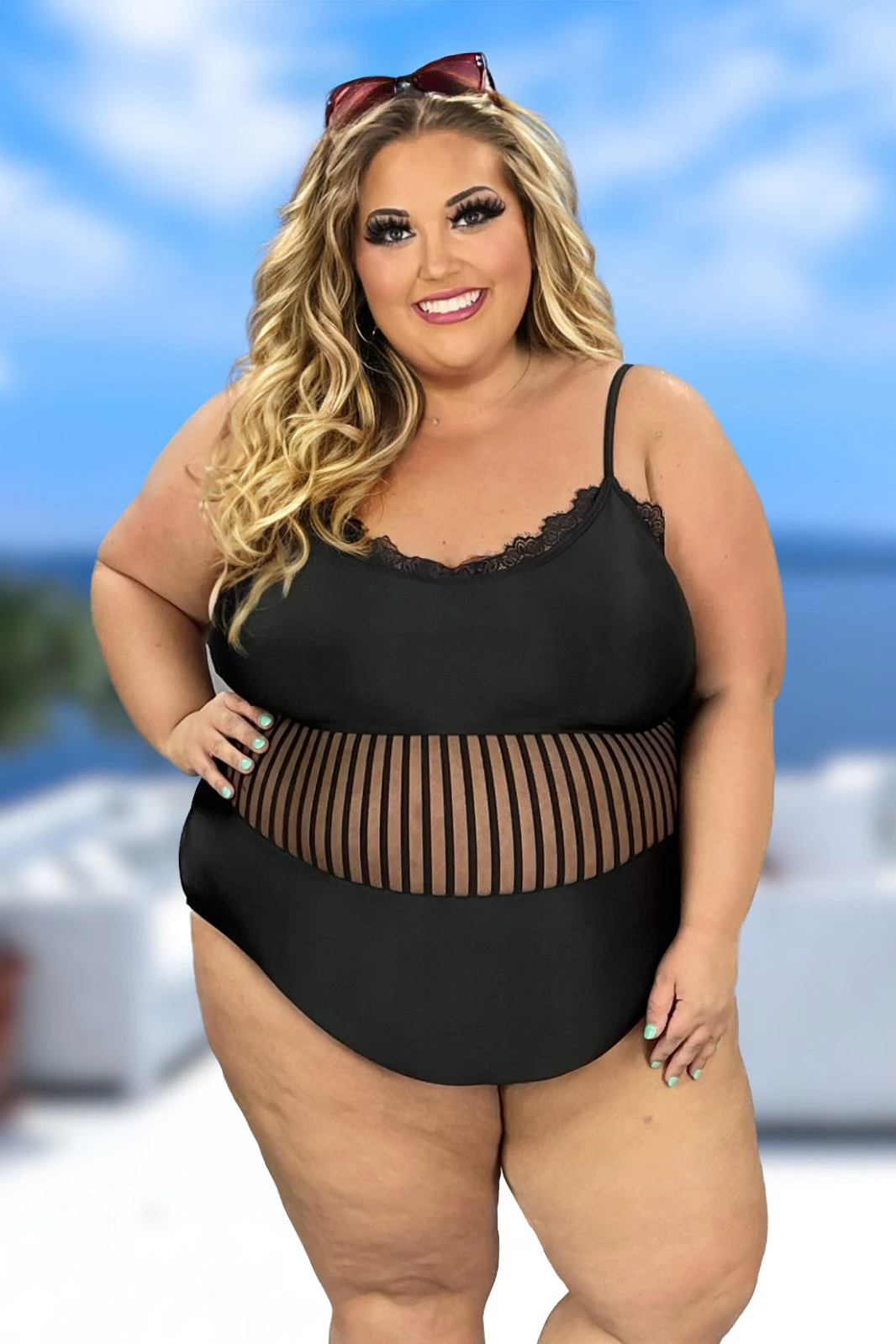 SWIM-T {Talk To The Sand} Black One Piece Swimsuit SALE!!! EXTENDED PLUS SIZE 3X 4X